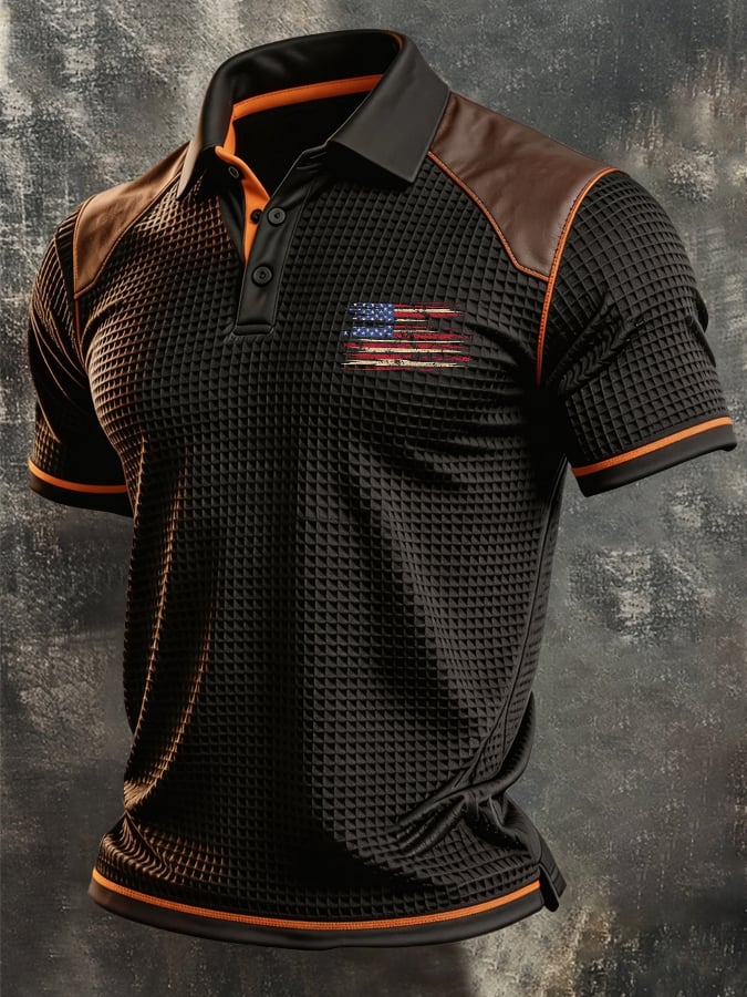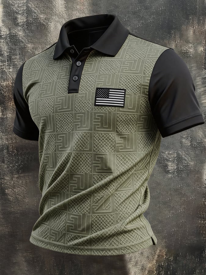 Men's Retro Patriotic Color-Block Short-Sleeve Polo Shirt$32.99 USD$79.22 USD