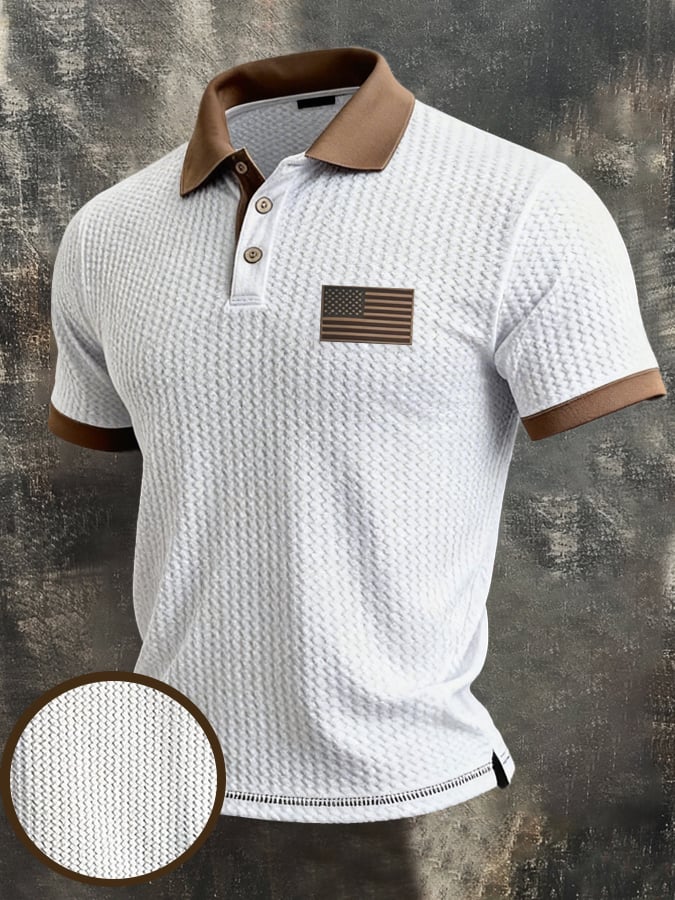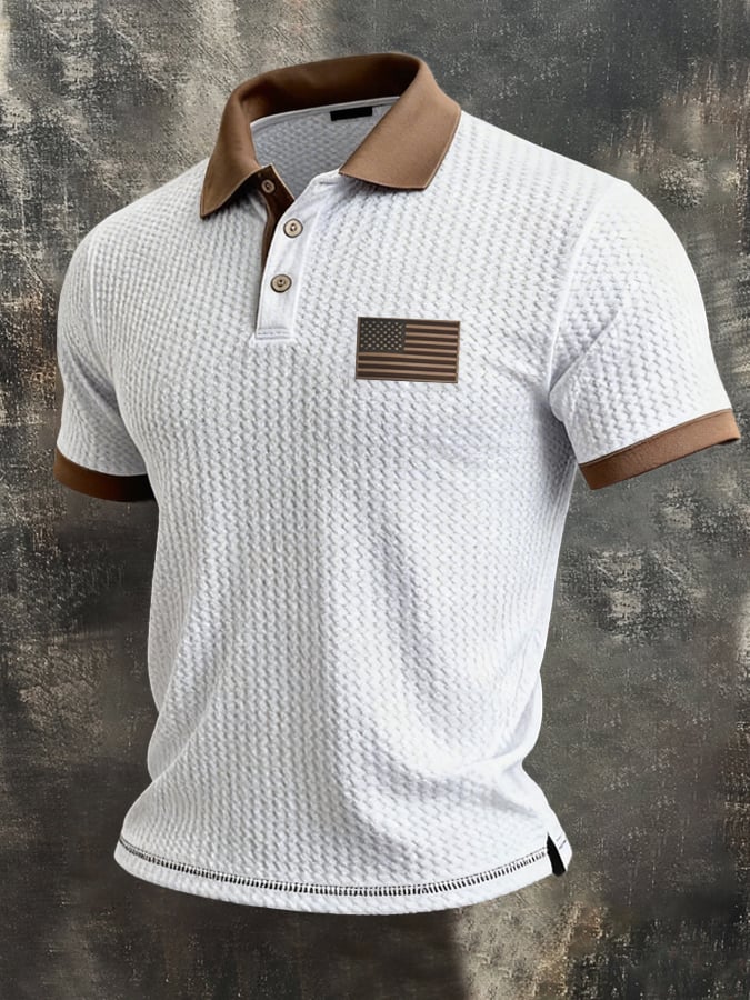 Men'S Retro "Patriot" Textured Fabric Short-Sleeve T-Shirt With Contrast Polo Collar$29.11 USD$61.20 USD