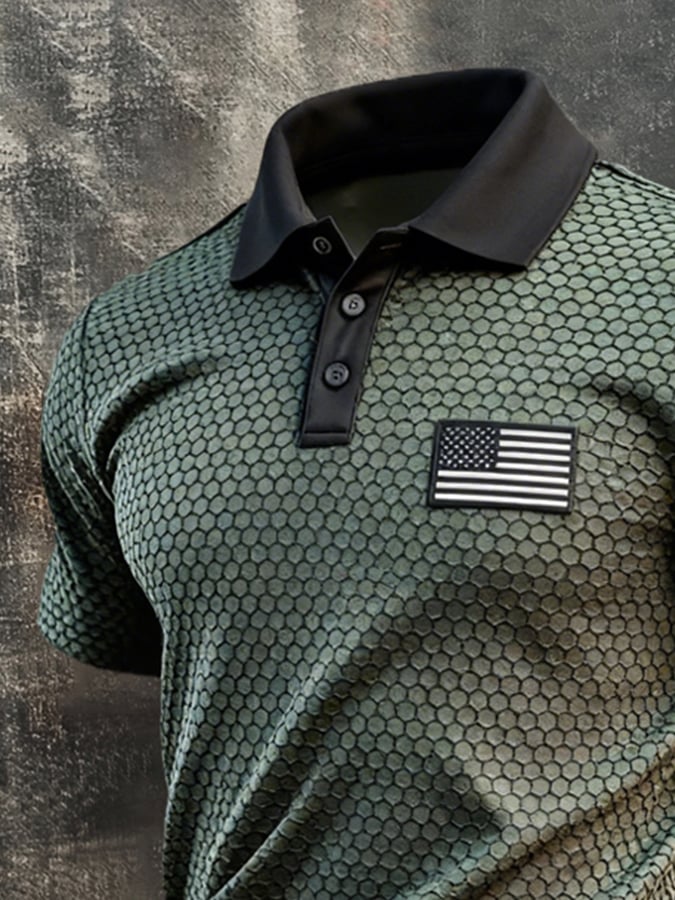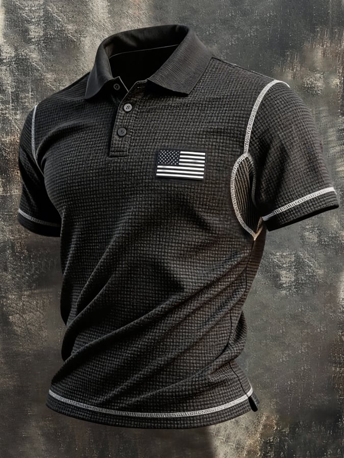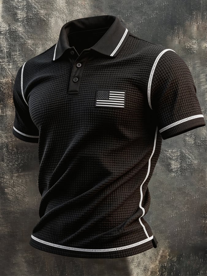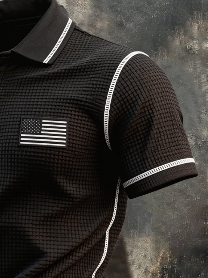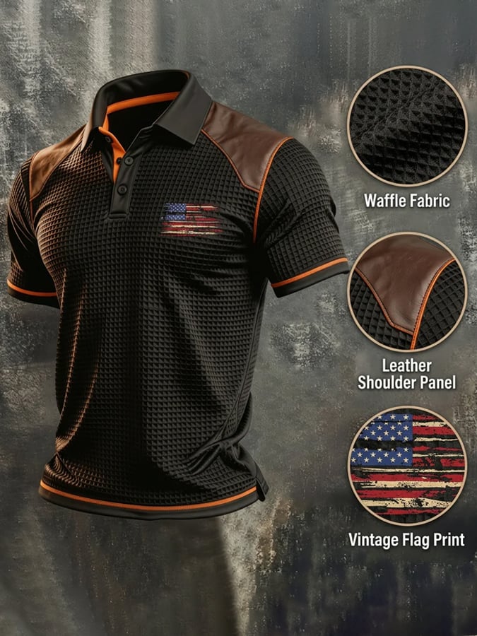Men's Vintage 3D Waffle-Knit Fabric "Patriot" Polo Shirt$32.99 USD$79.22 USD