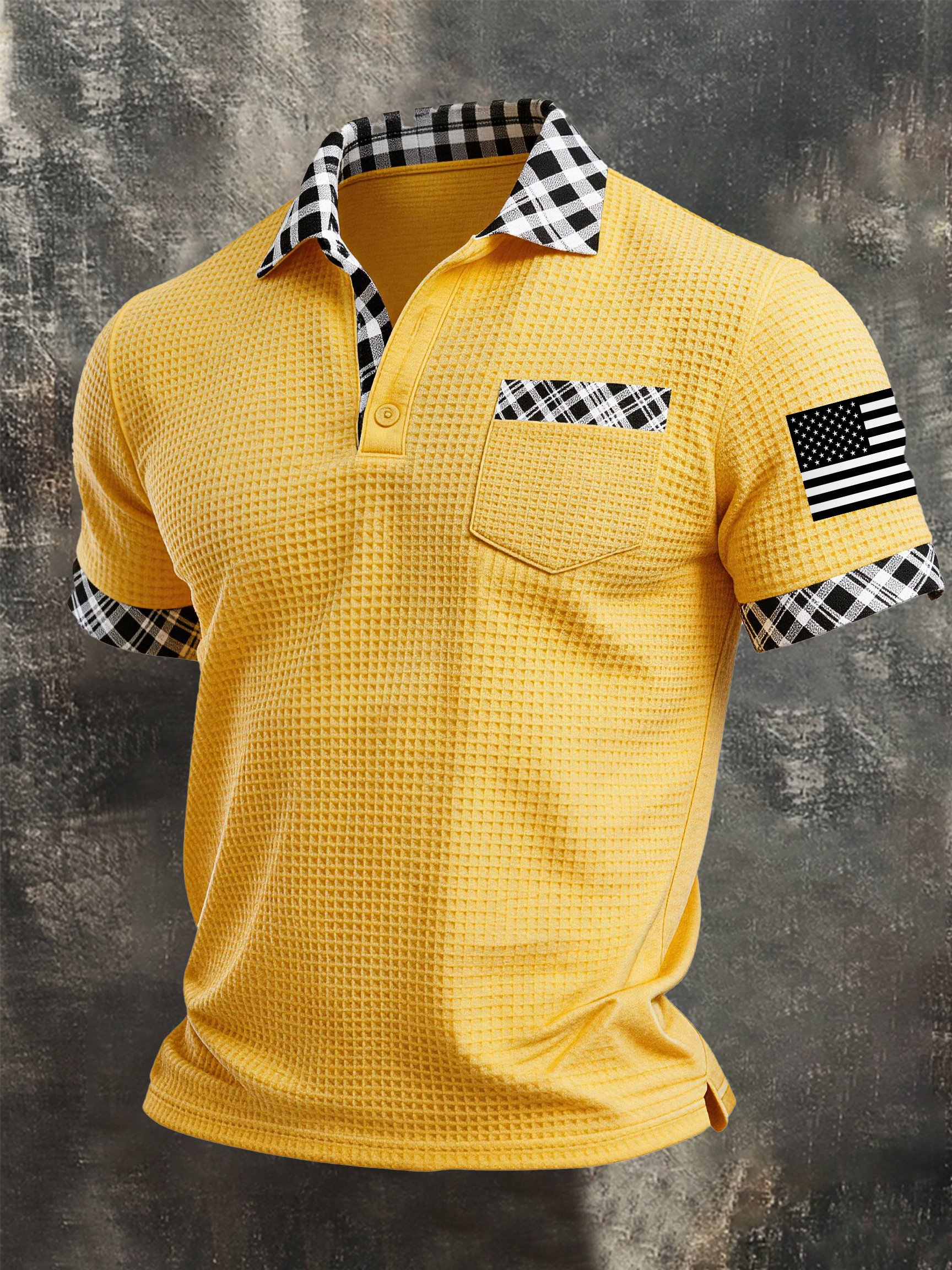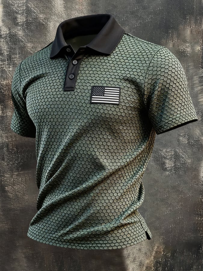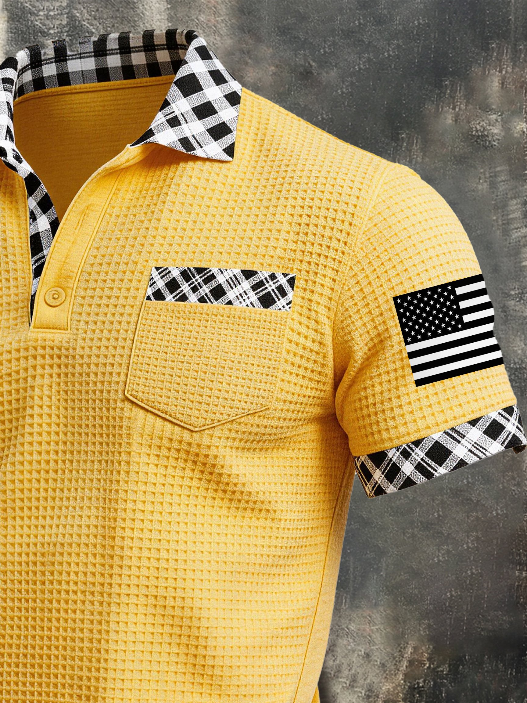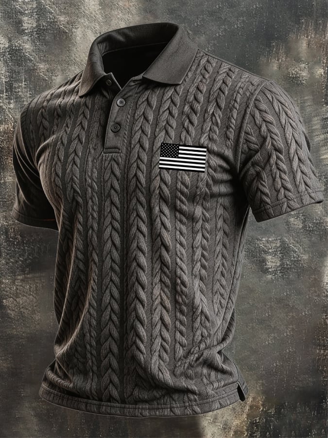 Men's Vintage 3D Waffle-Knit Fabric "Patriot" Polo Shirt$32.99 USD$79.22 USD