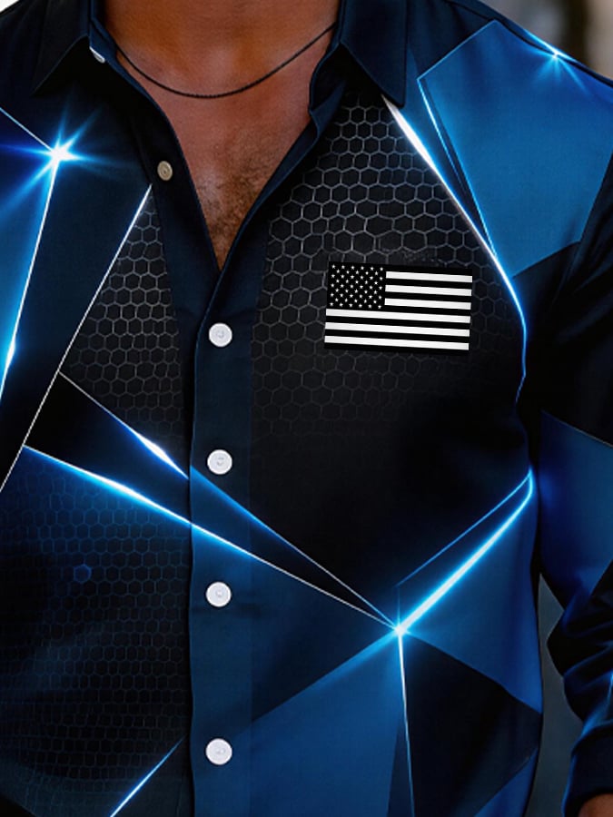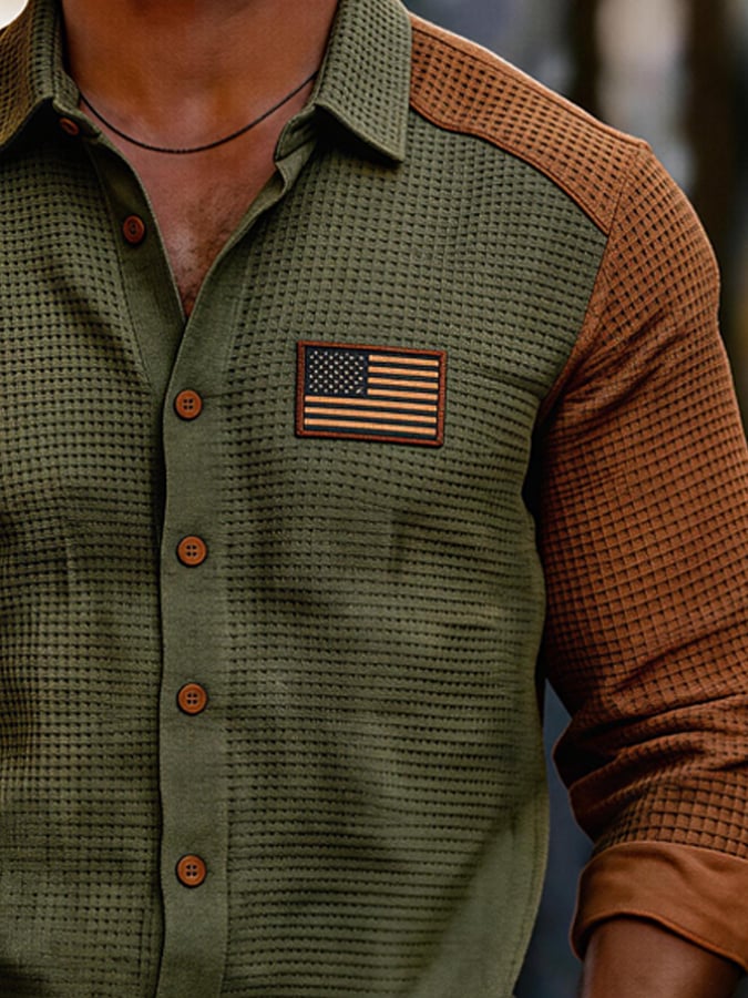 Men's Basic Casual Color-Block "Patriot" Long-Sleeve Shirt$32.99 USD$79.22 USD