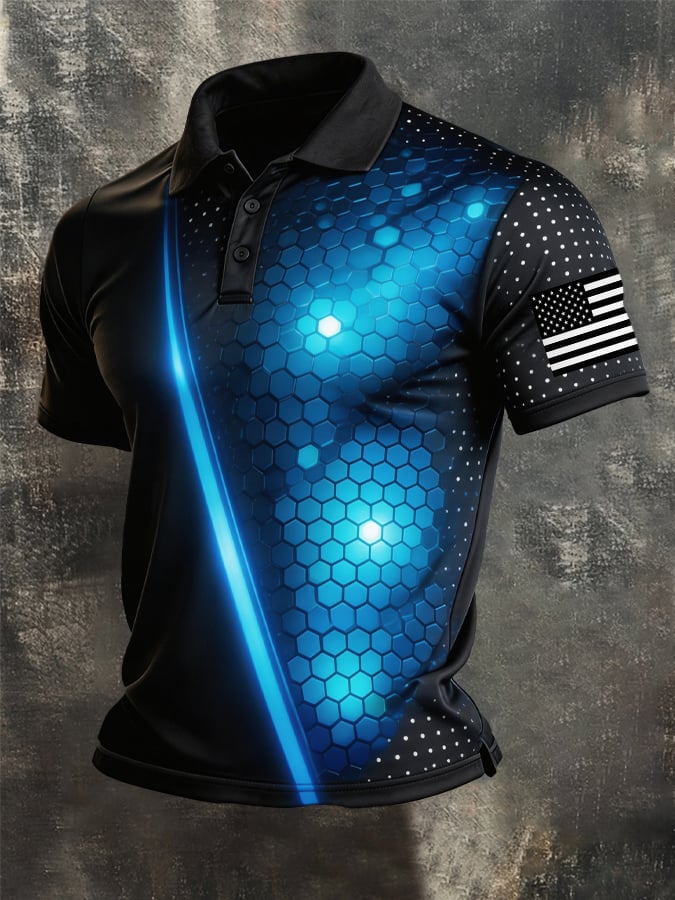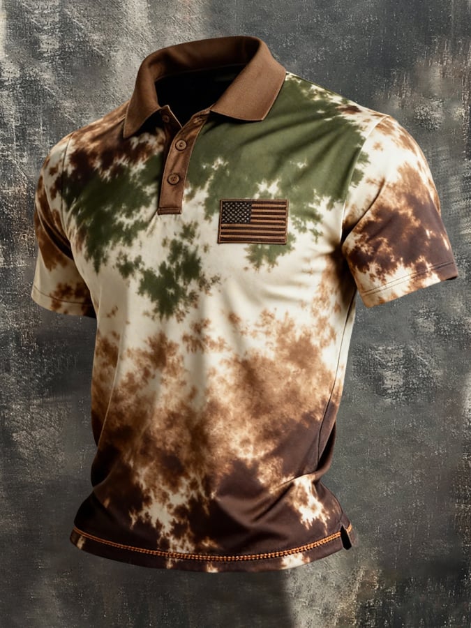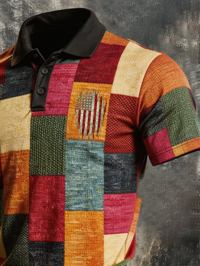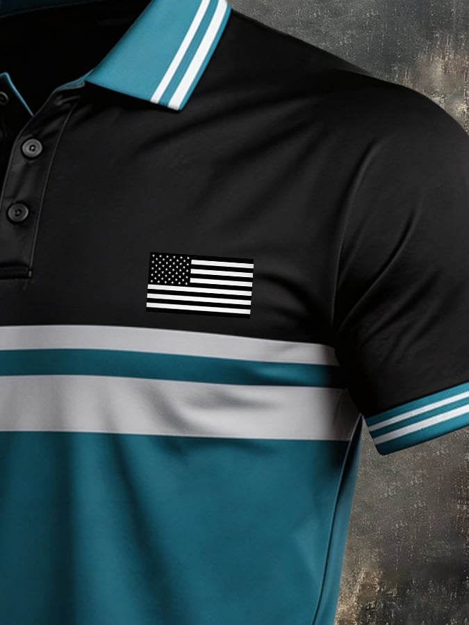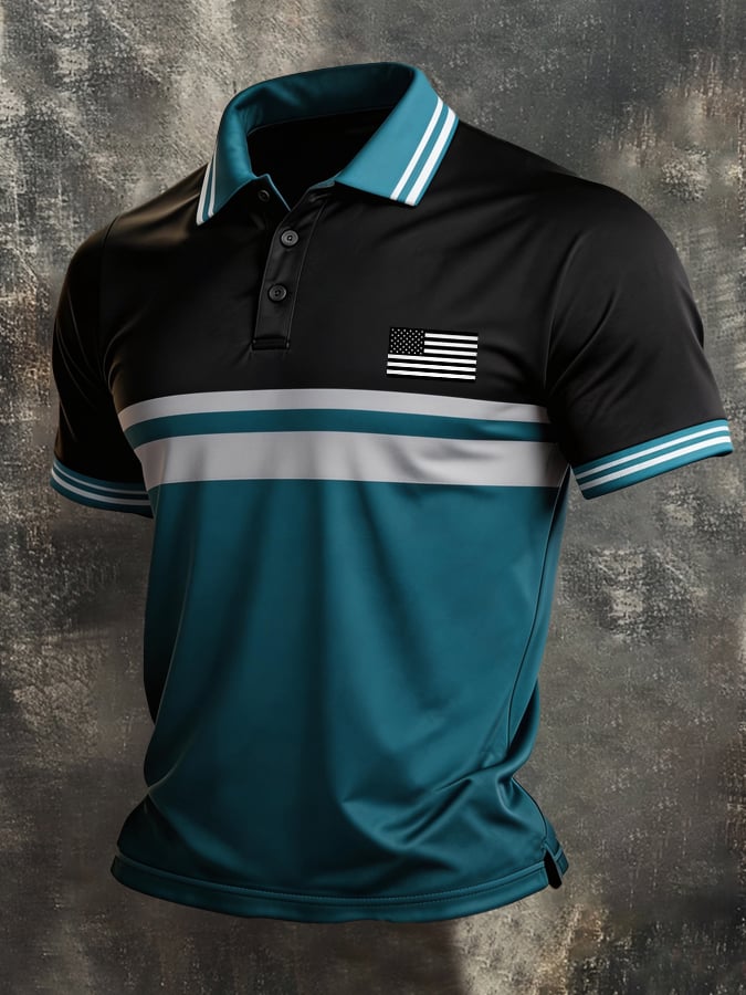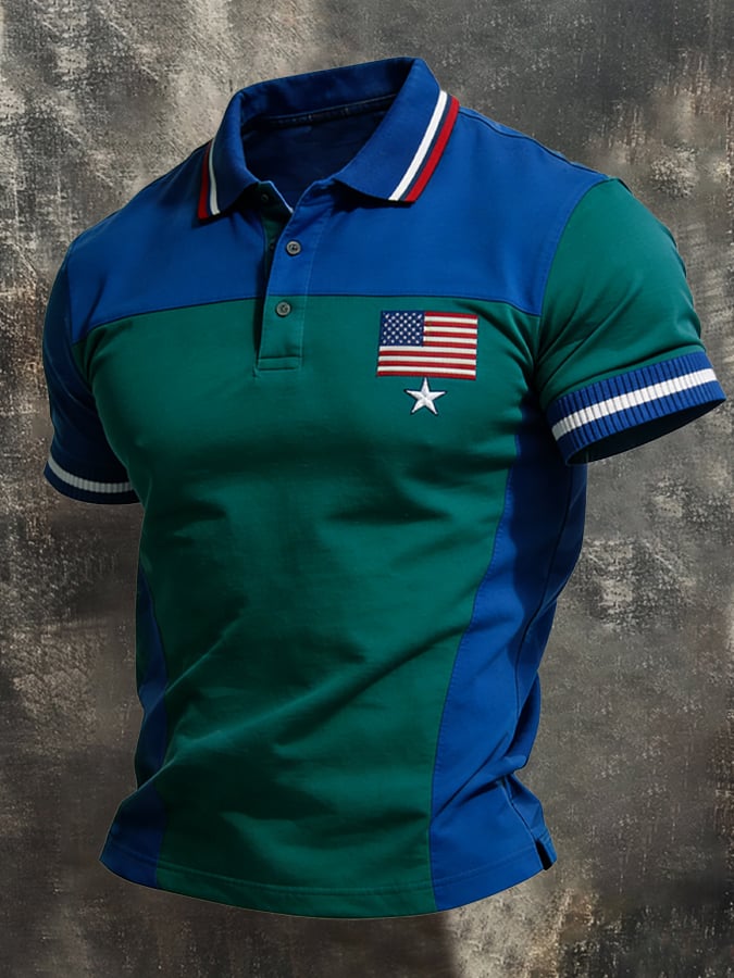 Men's Retro Patriot Color Block Polo Collar Short Sleeve$26.99 USD$52.31 USD