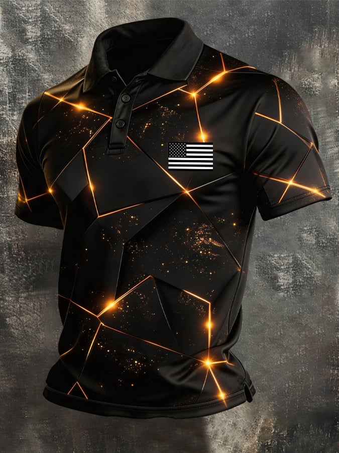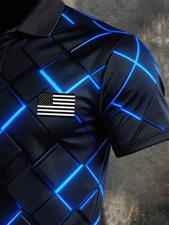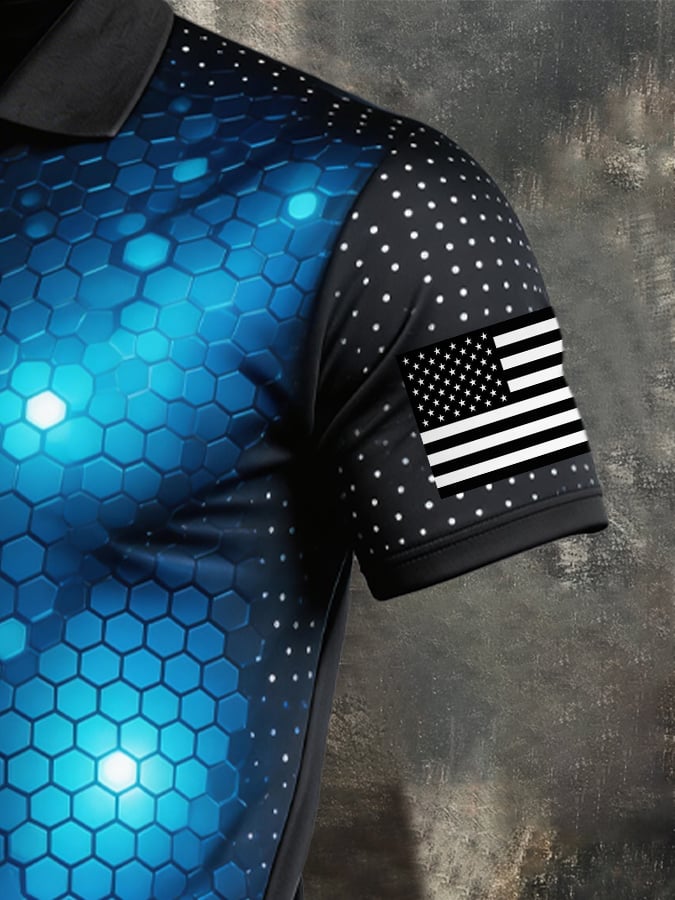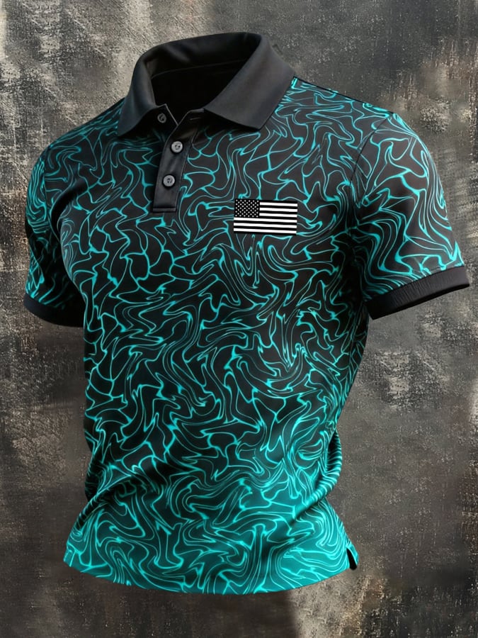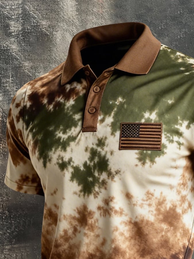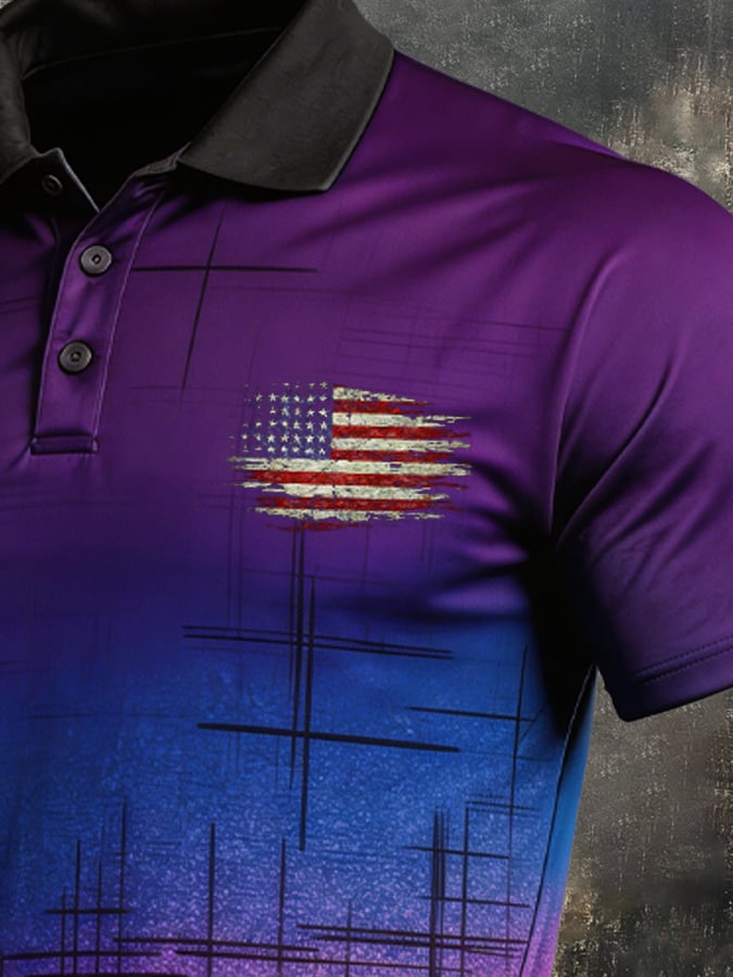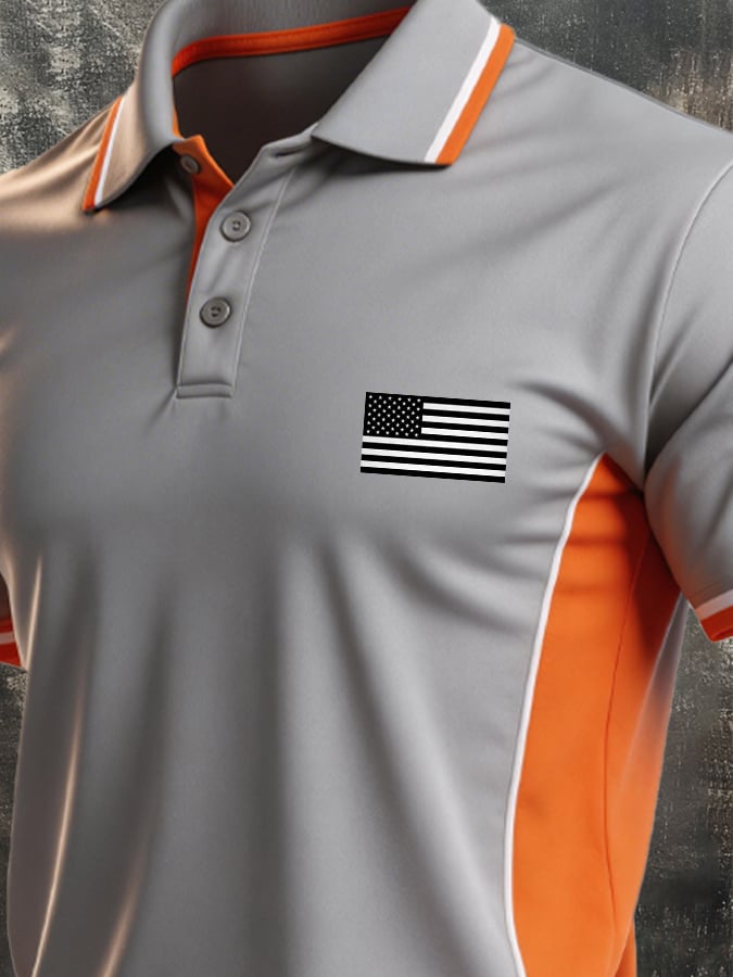 Men's Retro Patriotic Color-Block Short-Sleeve Polo Shirt$26.99 USD$52.31 USD