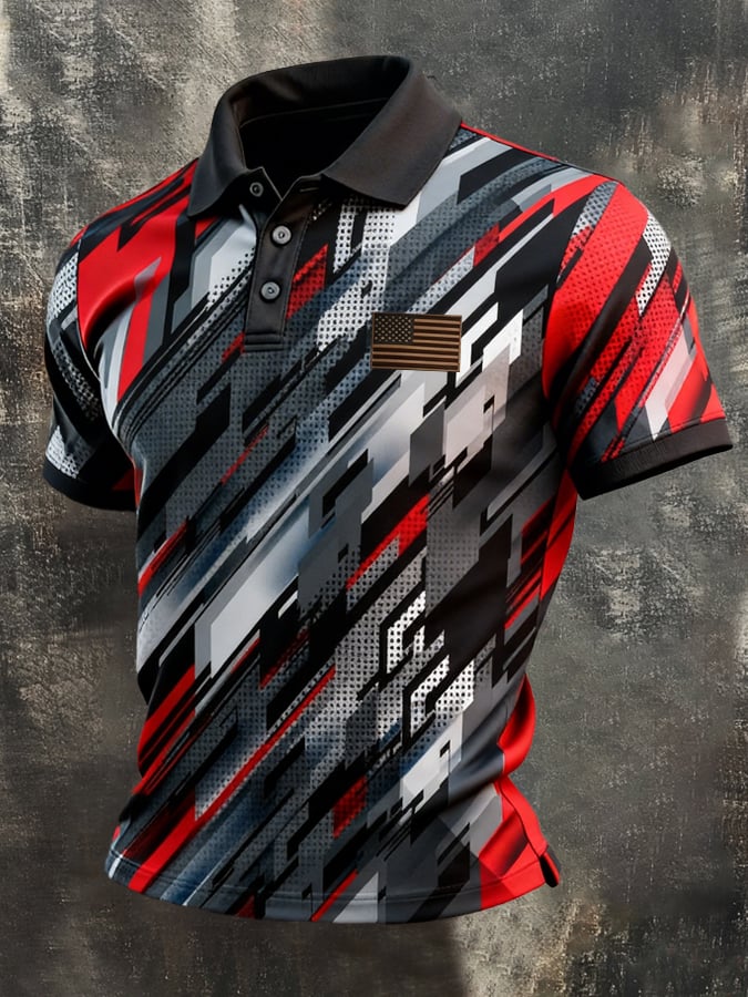 Men's Retro Patriotic Color-Block Short-Sleeve Polo Shirt$26.99 USD$55.30 USD