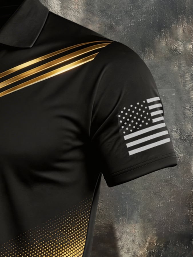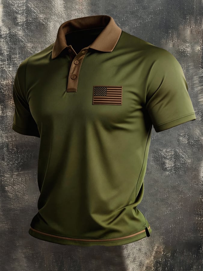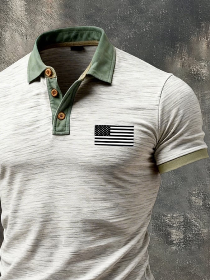 Men's Retro Patriot Color Block Polo Collar Short Sleeve$26.99 USD$67.26 USD