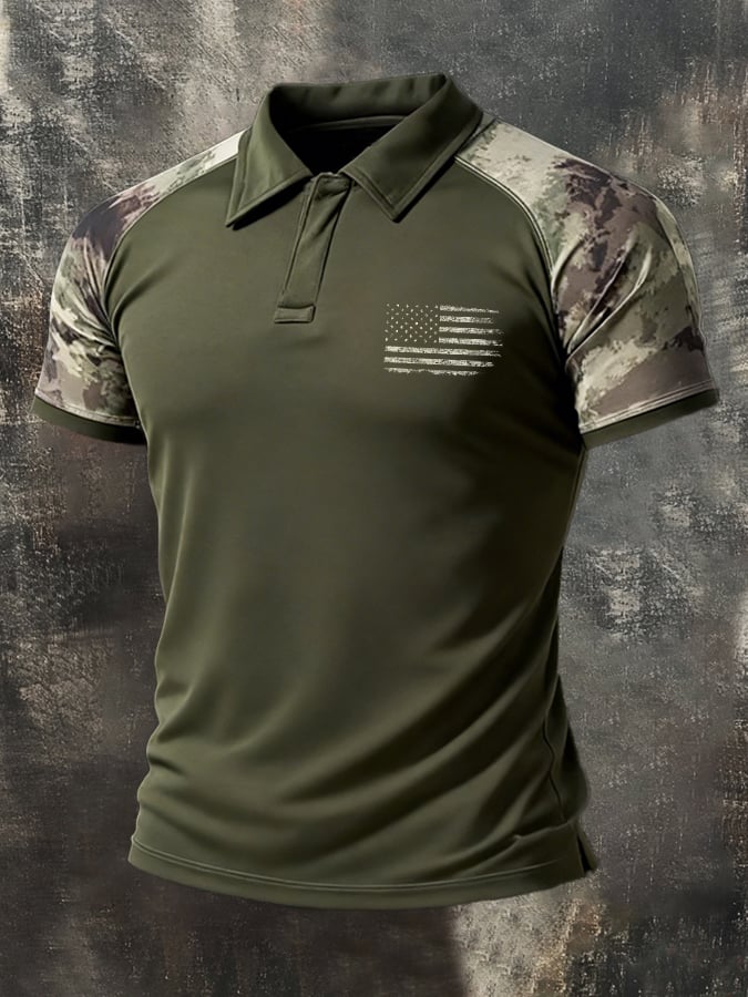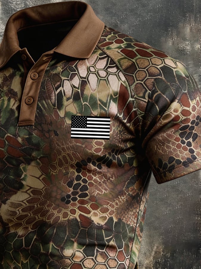 Men's Retro Patriot Camo Polo Collar Short Sleeve$26.99 USD$50.16 USD