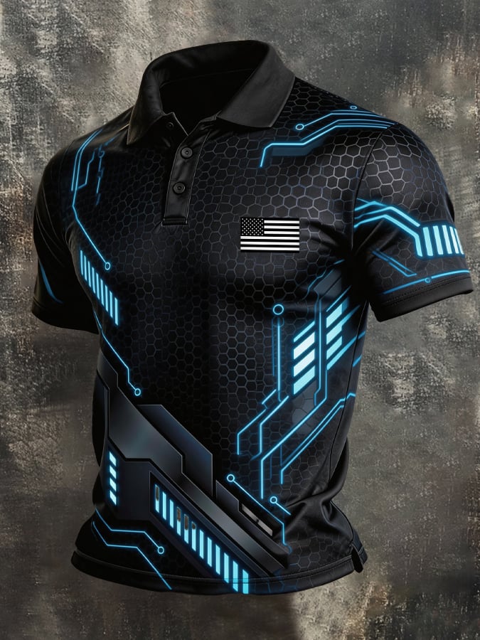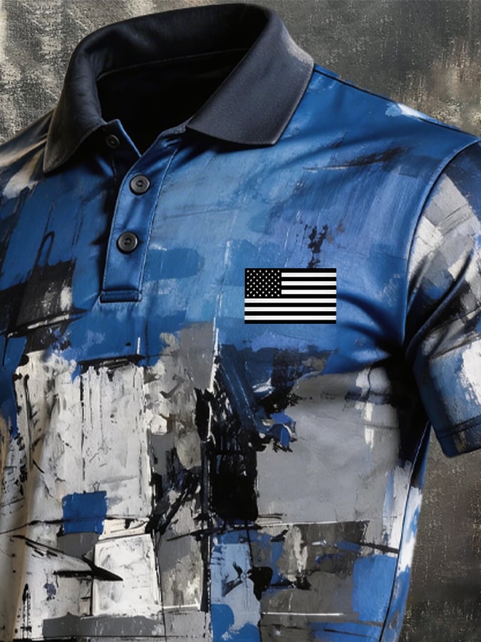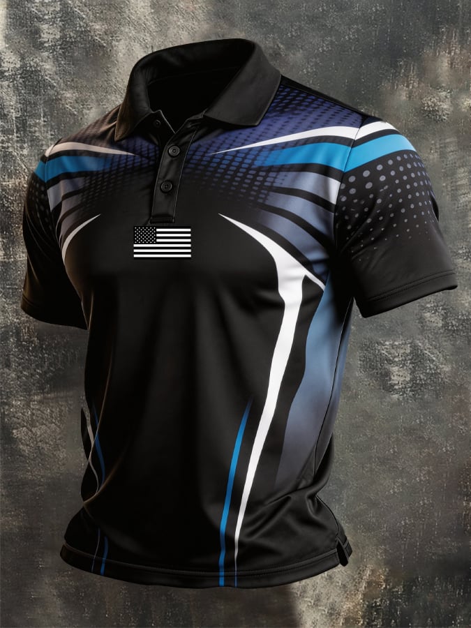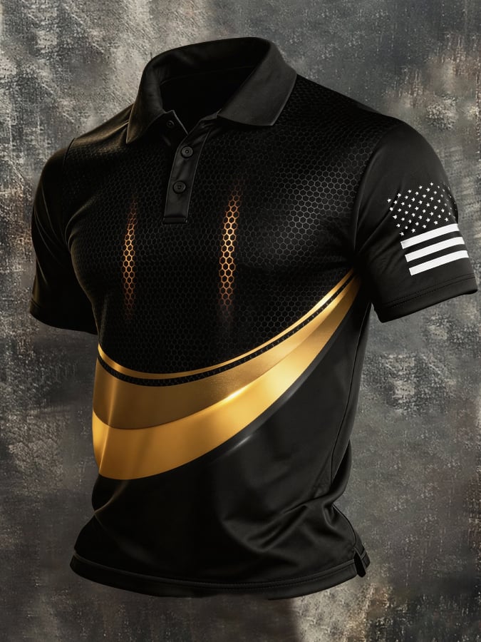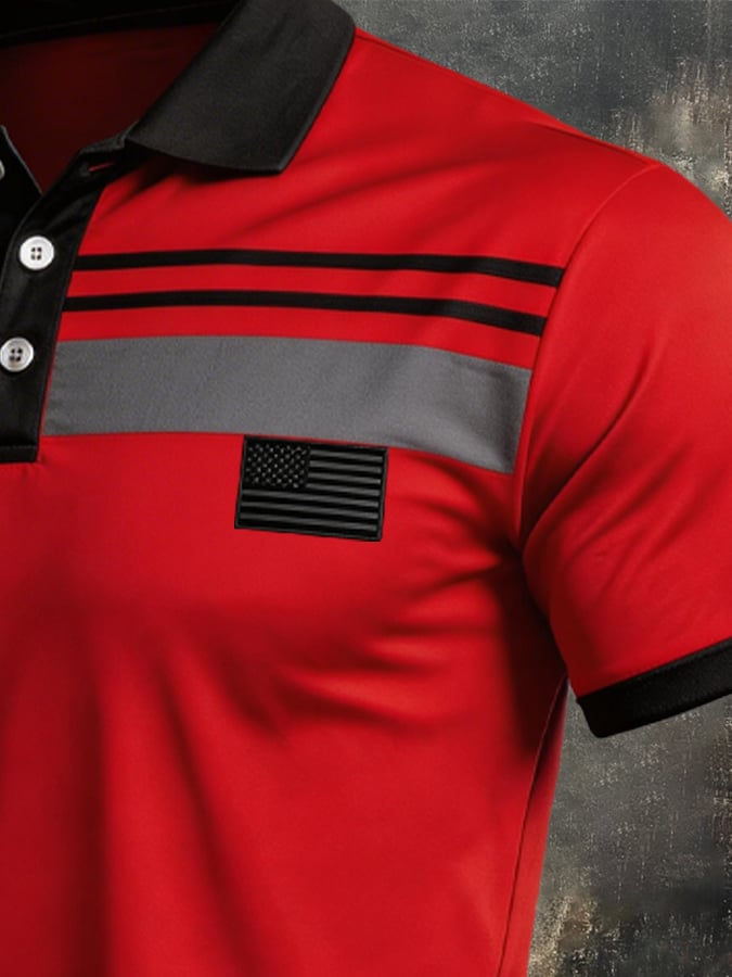 Men's Retro Patriot Color Block Polo Collar Short Sleeve$26.99 USD$61.28 USD