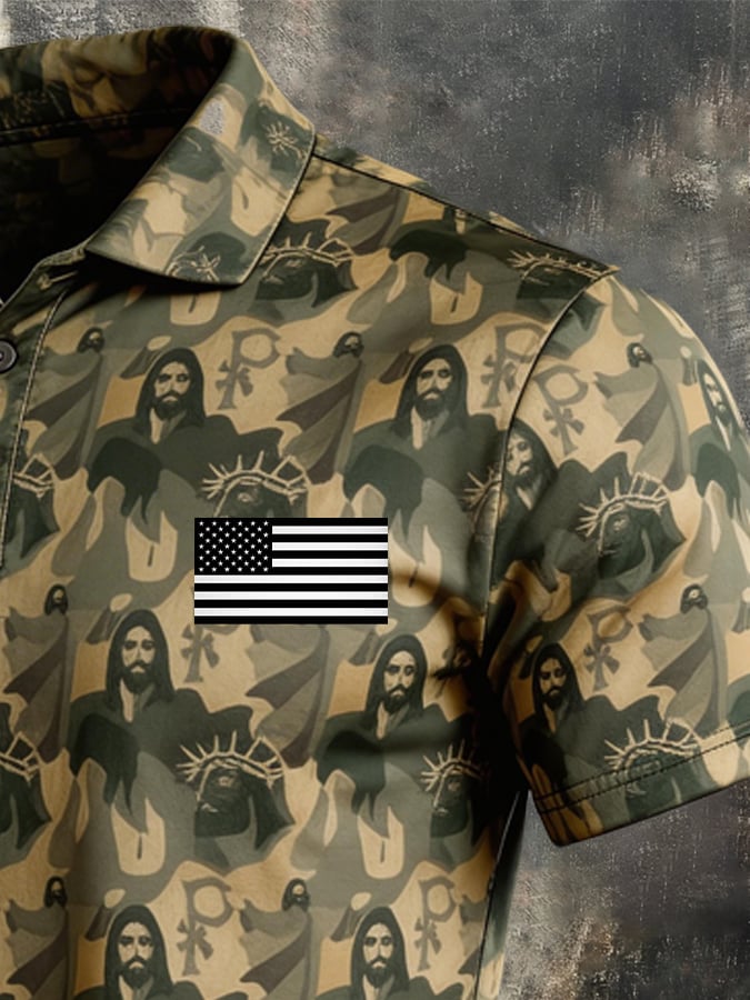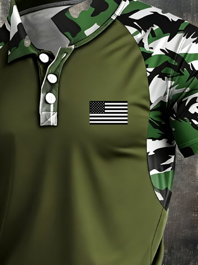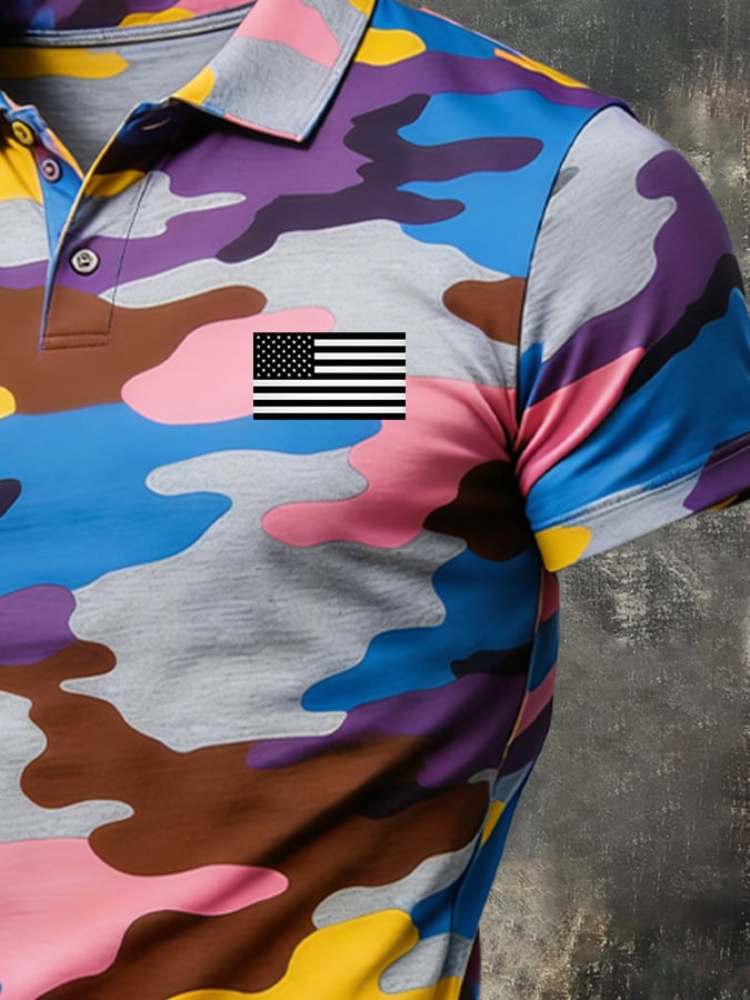 Men's Retro Patriot Camo Polo Collar Short Sleeve$26.99 USD$51.22 USD