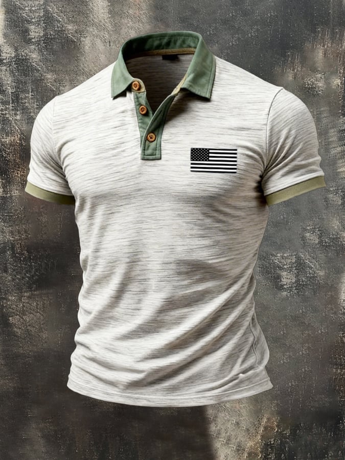 Men's Retro Patriot Color Block Polo Collar Short Sleeve$26.99 USD$55.30 USD