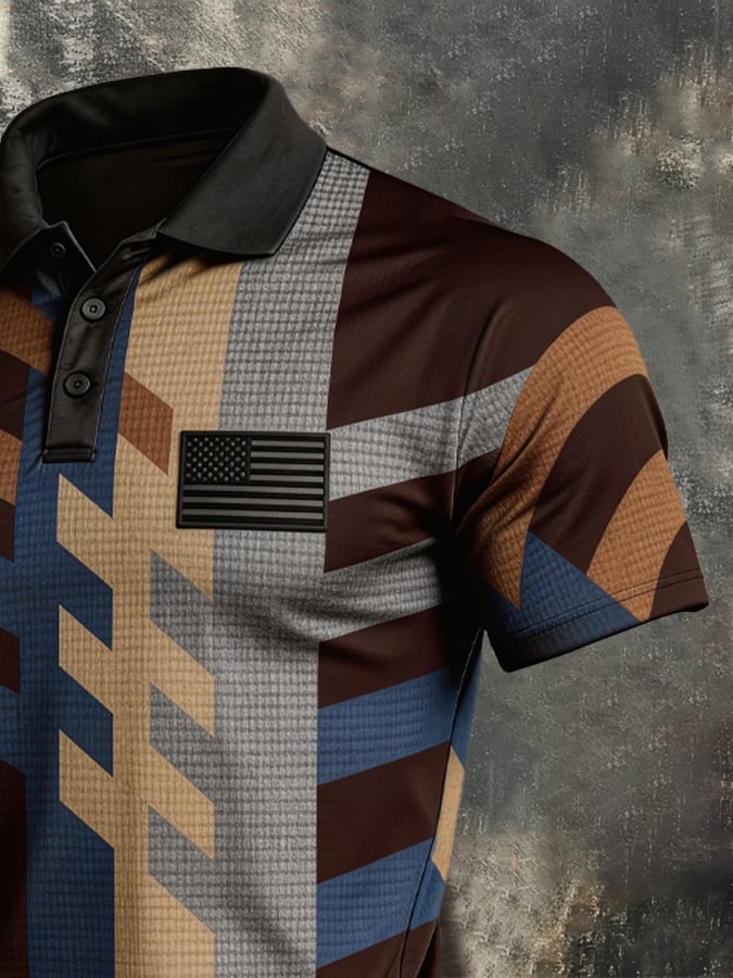 Men's Retro Patriot Color Block Polo Collar Short Sleeve$26.99 USD$51.22 USD