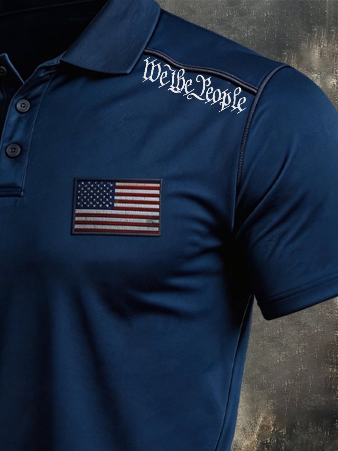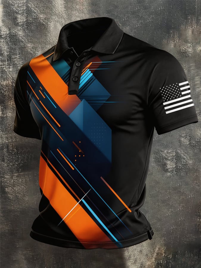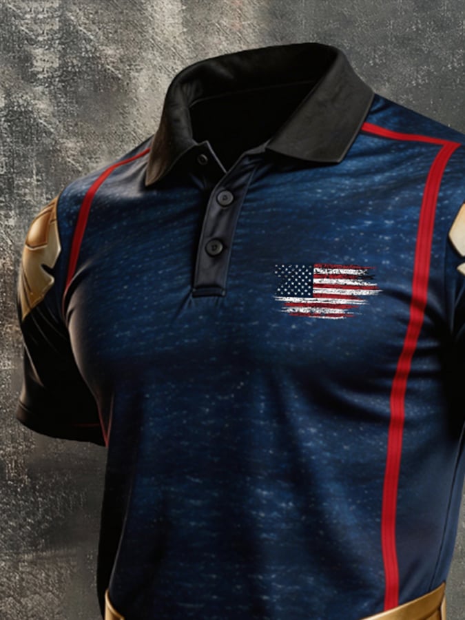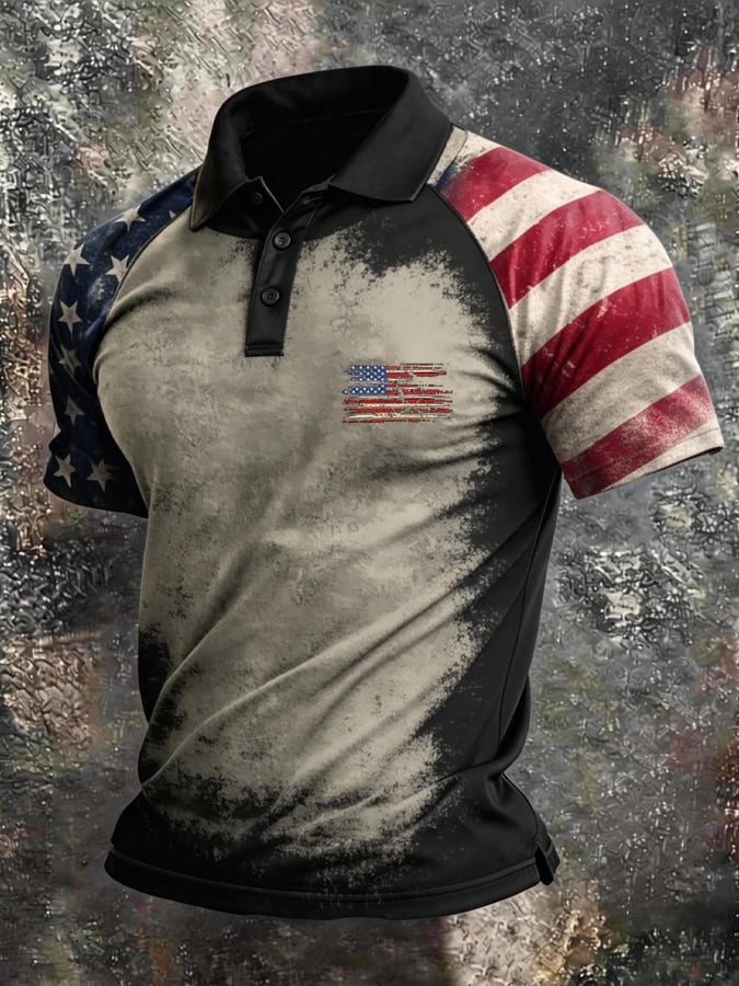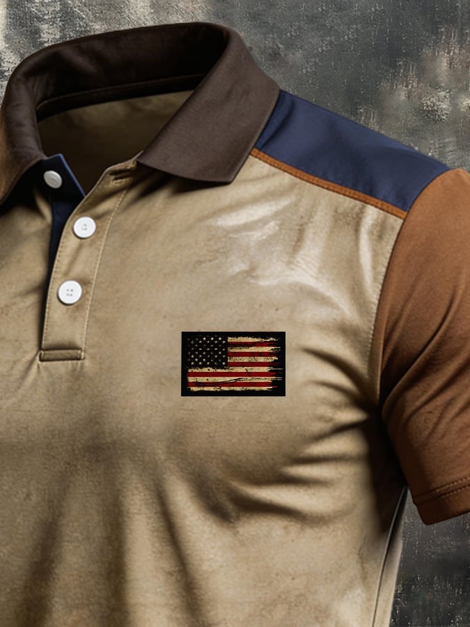 Men's Retro Patriotic Color-Block Short-Sleeve Polo Shirt$26.99 USD$53.81 USD