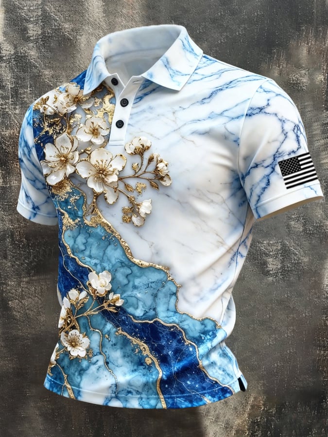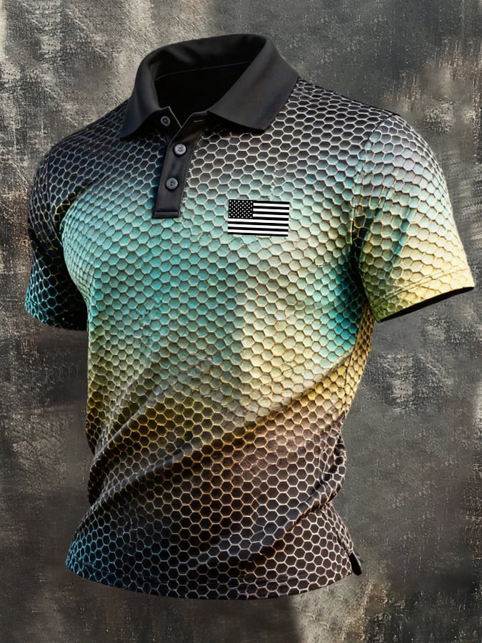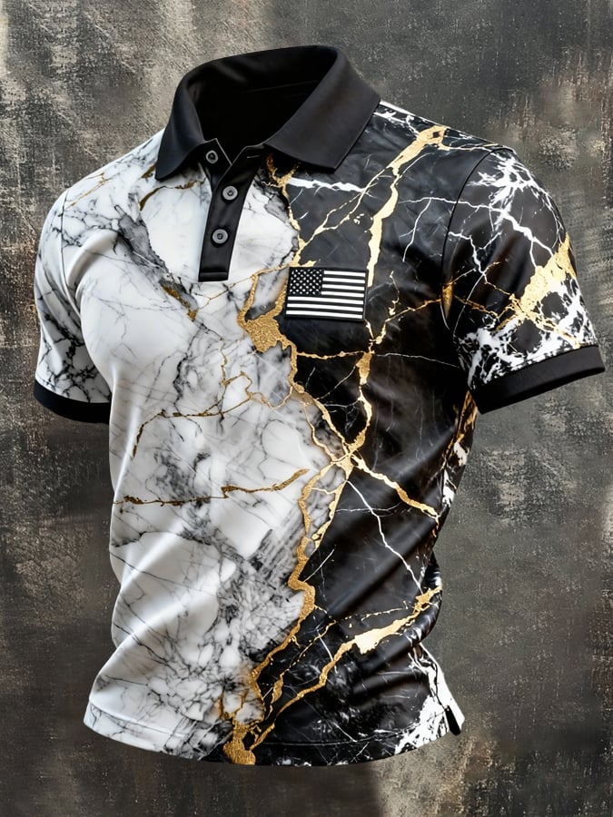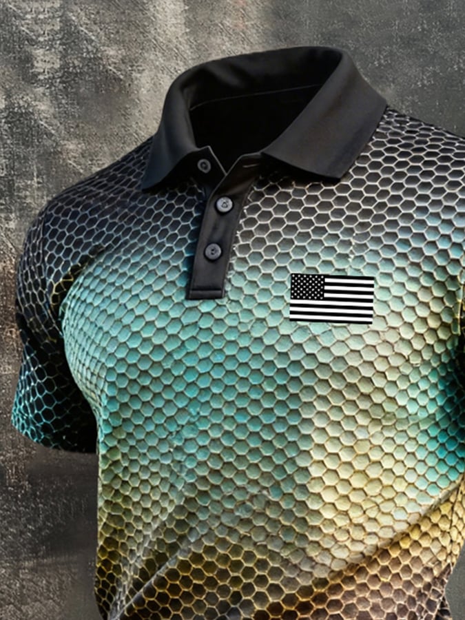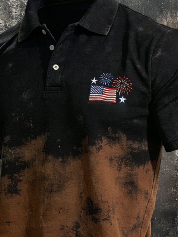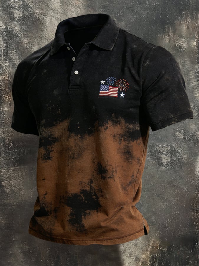 Men's Retro Patriotic Color-Block Short-Sleeve Polo Shirt$26.99 USD$61.28 USD