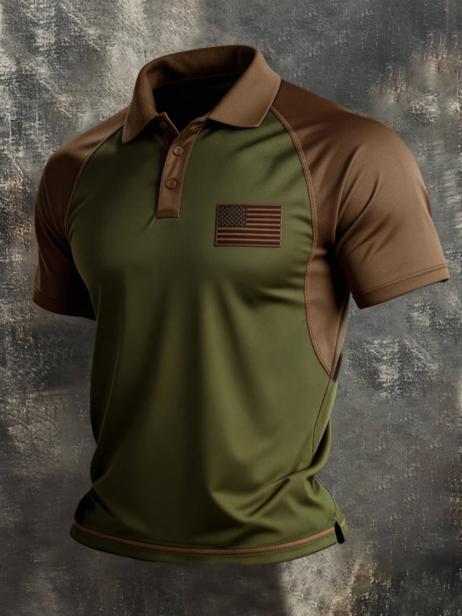 Men's Retro Patriot Color Block Polo Collar Short Sleeve$26.99 USD$64.27 USD