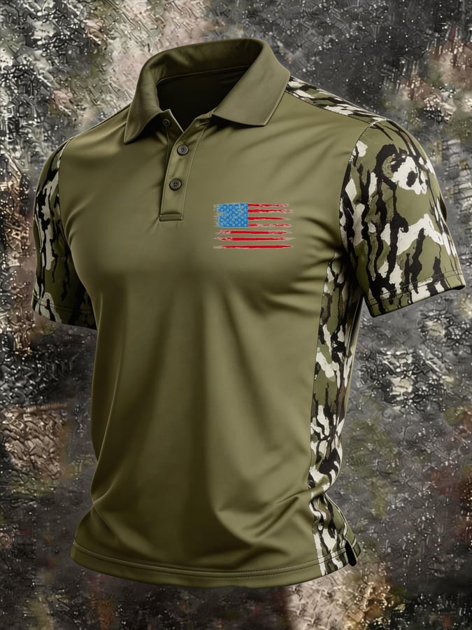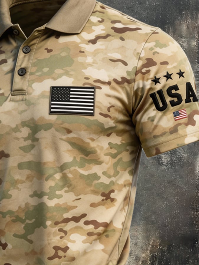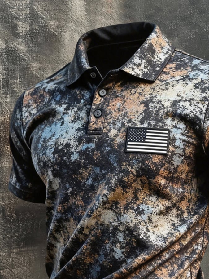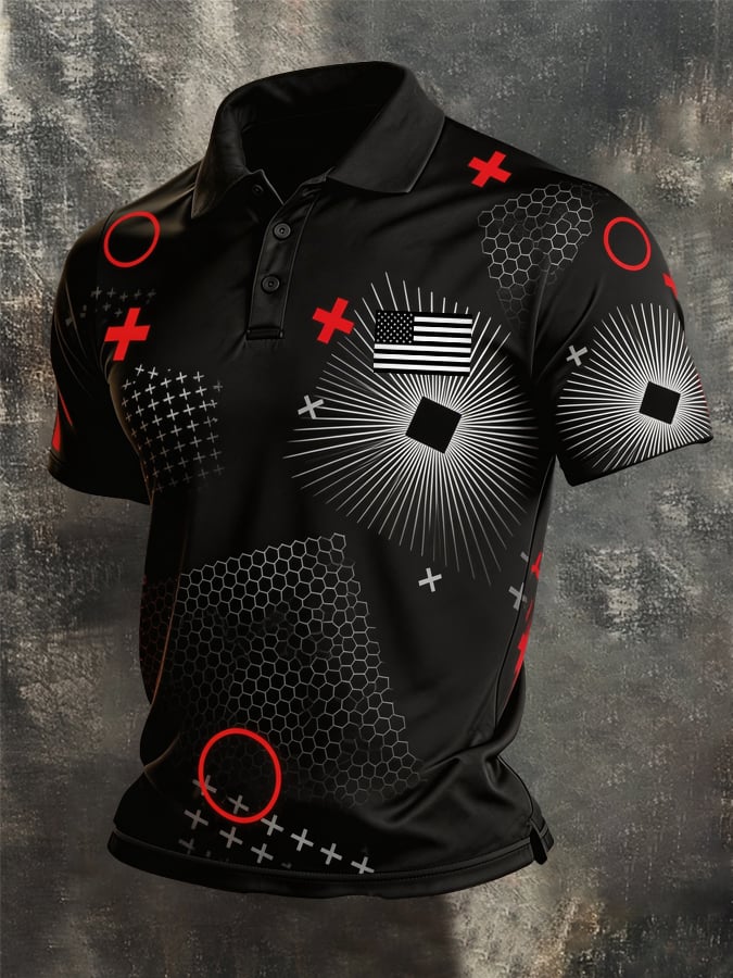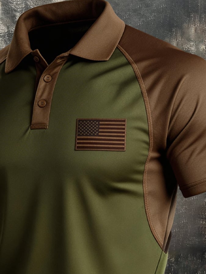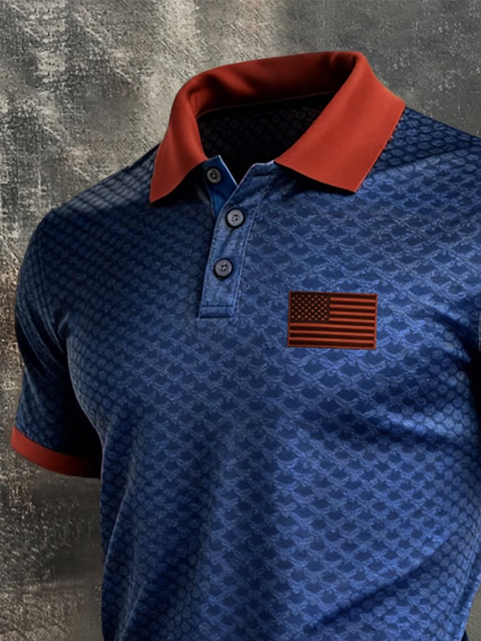 Men's Retro Patriotic Color-Block Short-Sleeve Polo Shirt$26.99 USD$52.31 USD