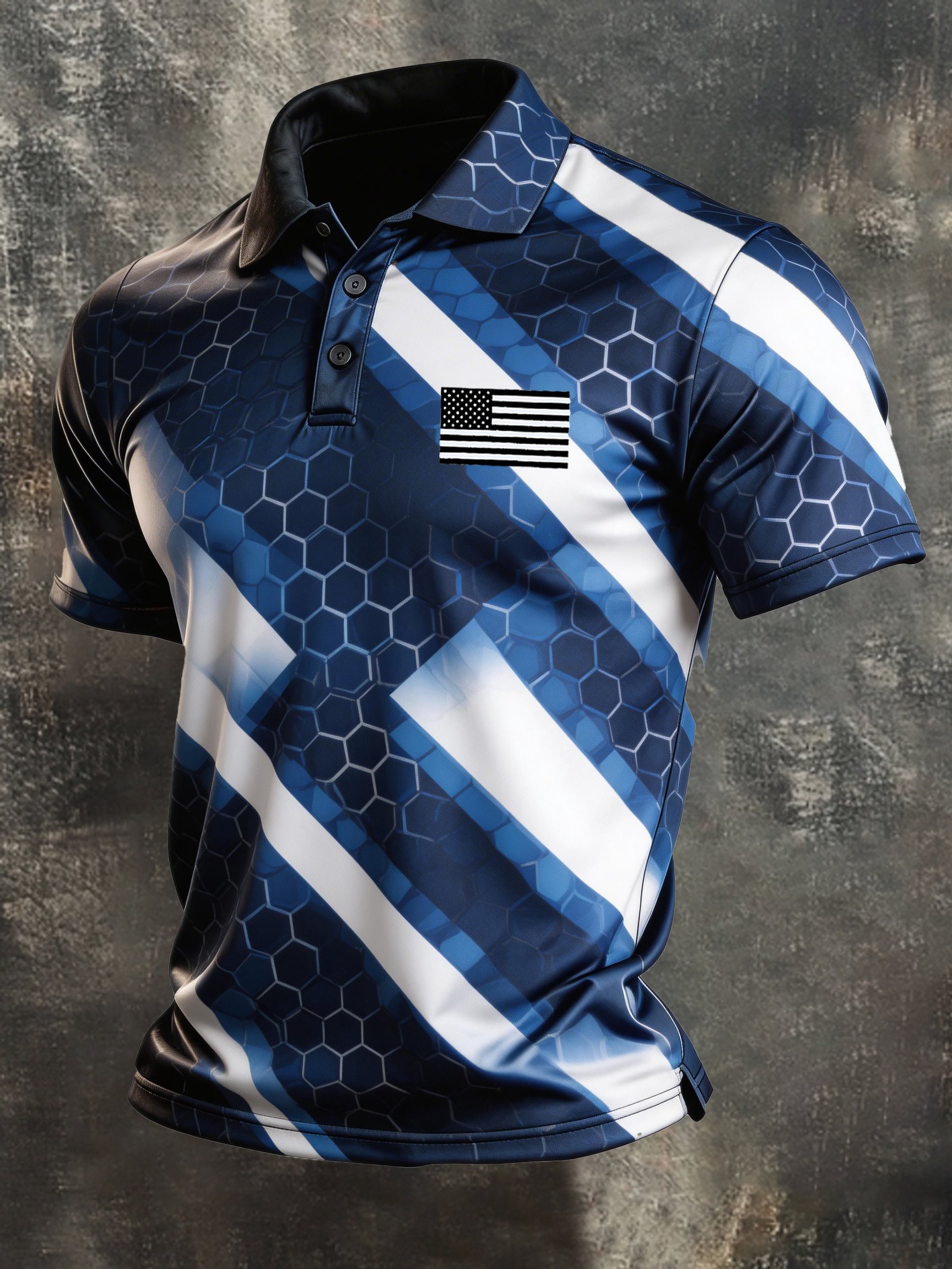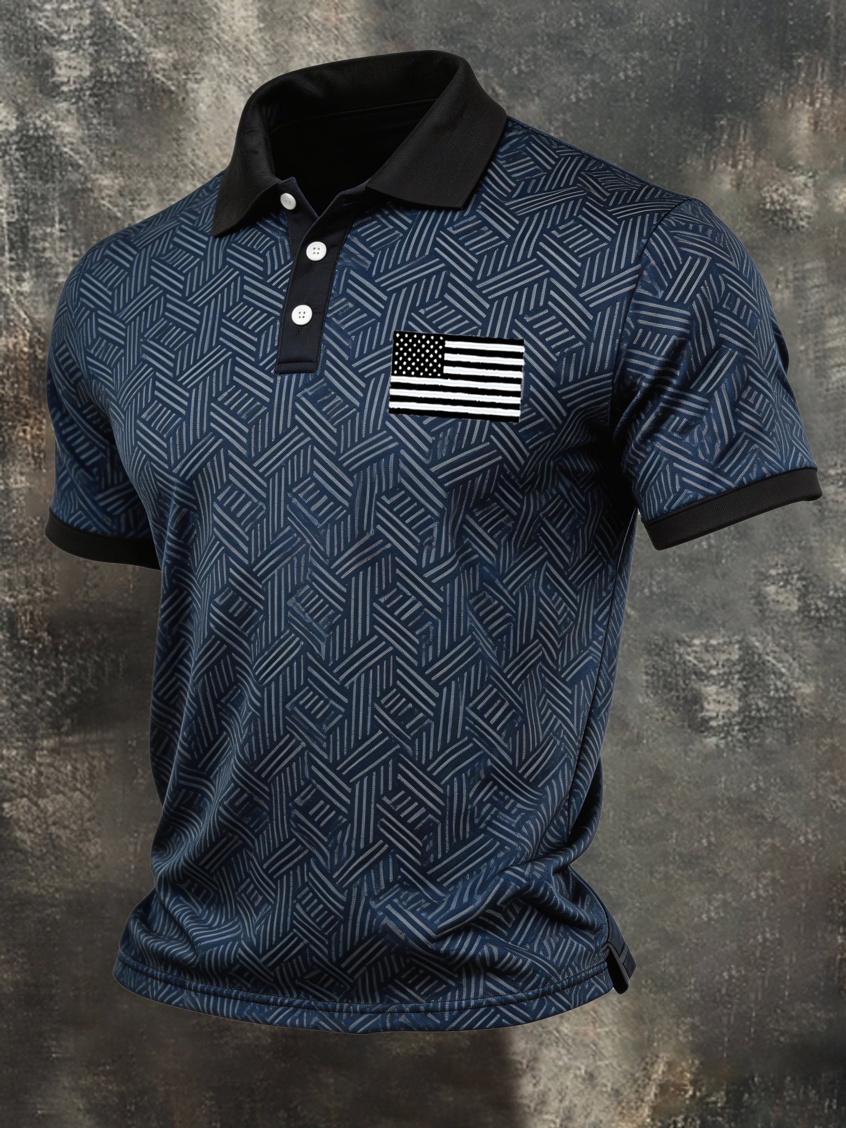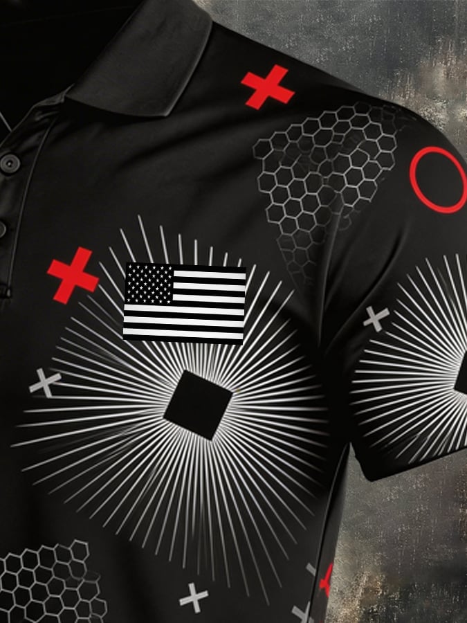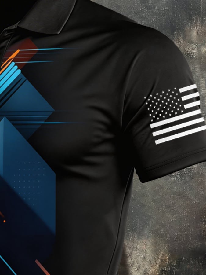 Men's Retro Patriotic Color-Block Short-Sleeve Polo Shirt$26.99 USD$59.79 USD
