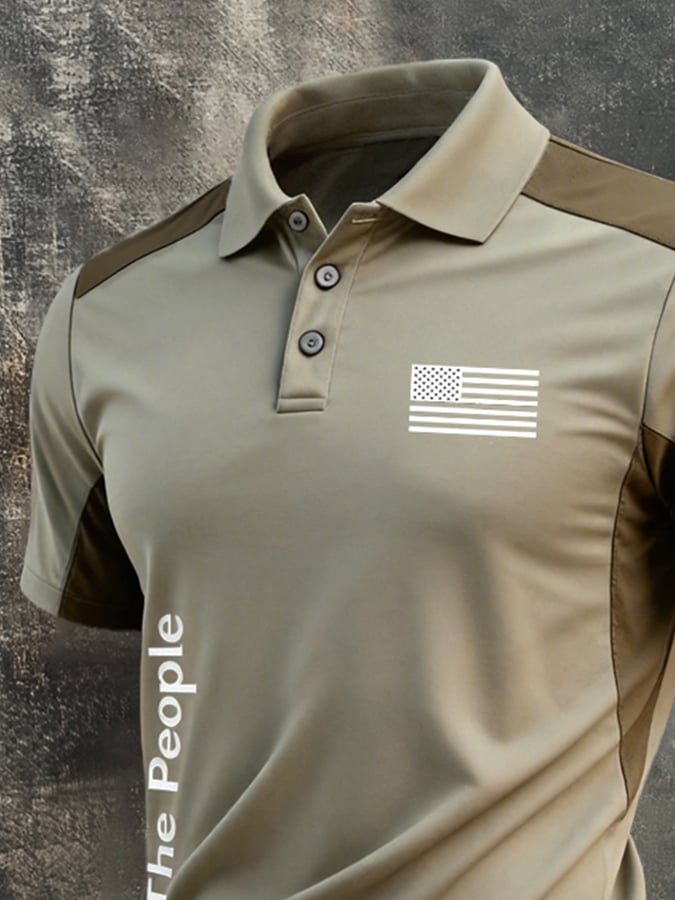 Men's Retro Patriot Color Block Polo Collar Short Sleeve$26.99 USD$52.31 USD