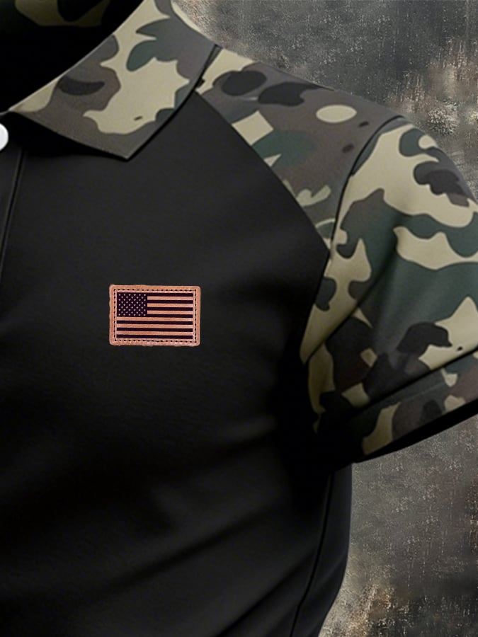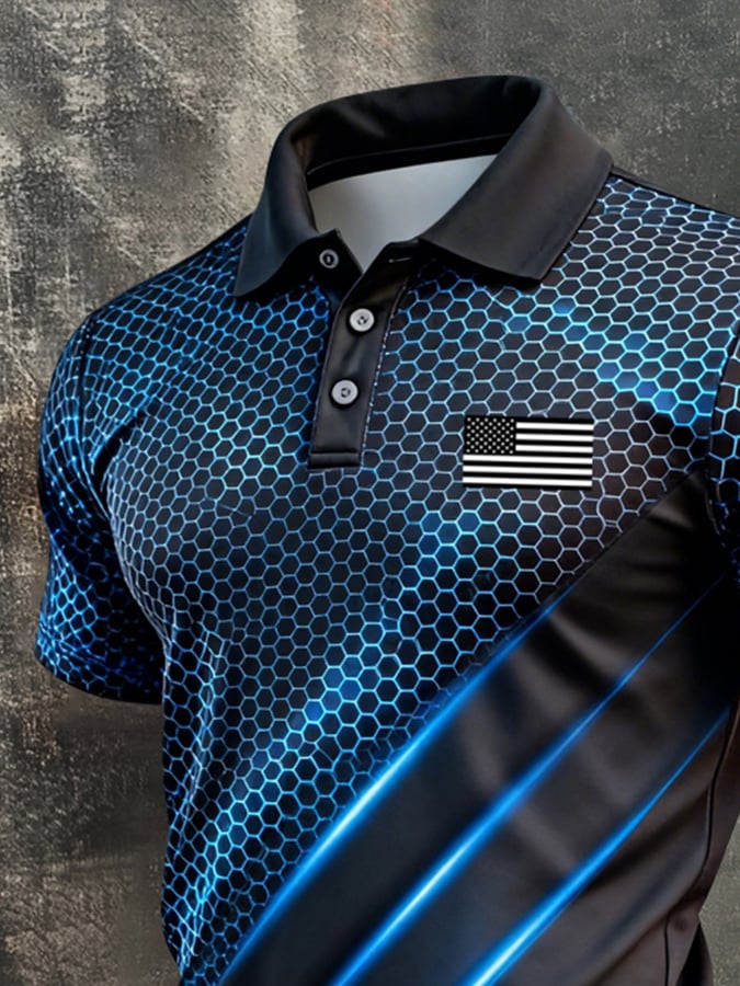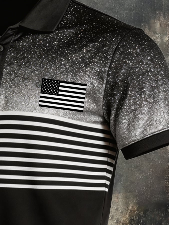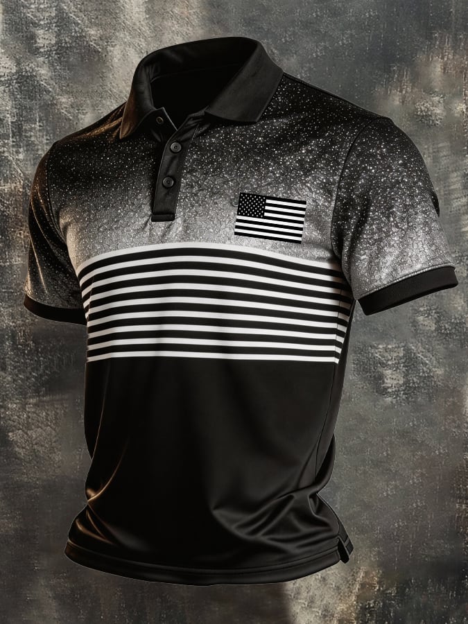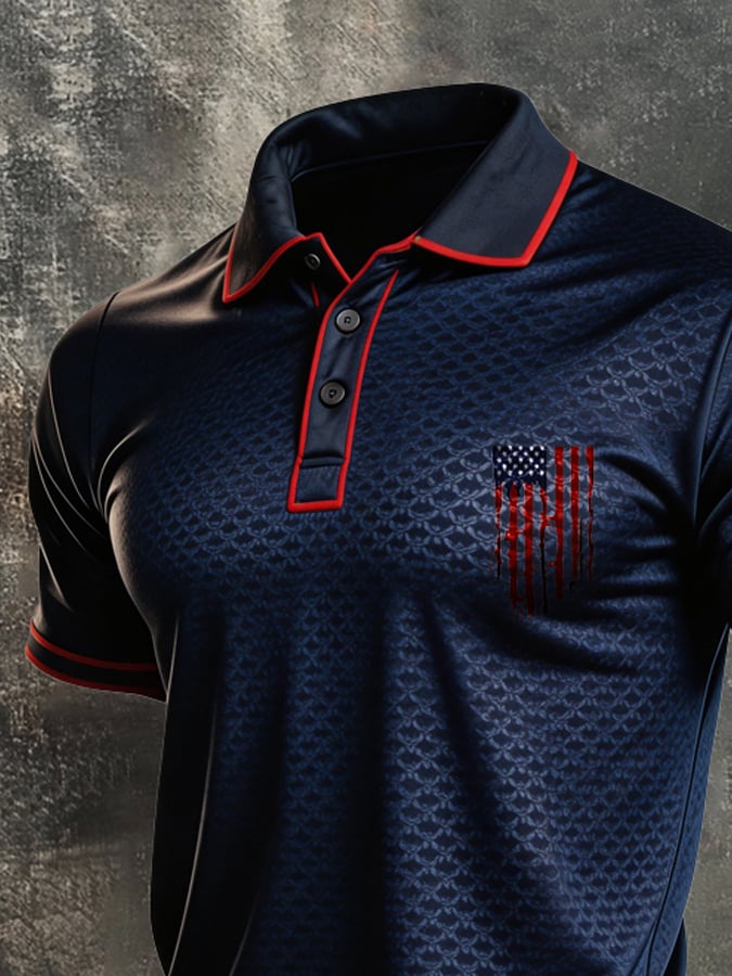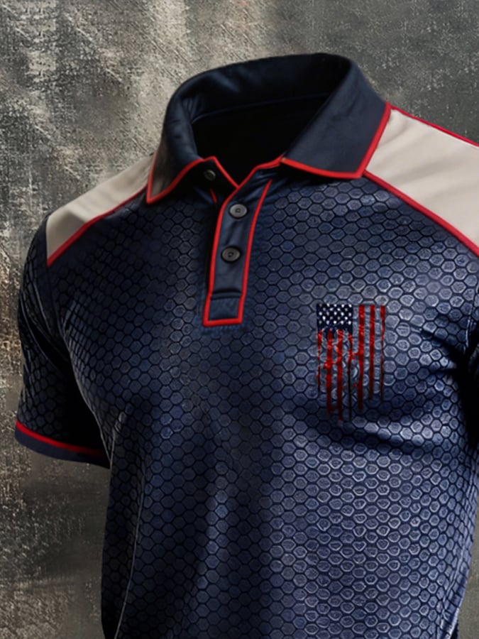 Men's Retro Patriotic Color-Block Short-Sleeve Polo Shirt$26.99 USD$64.27 USD