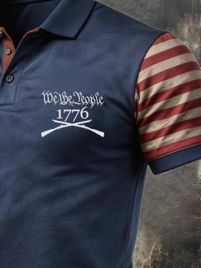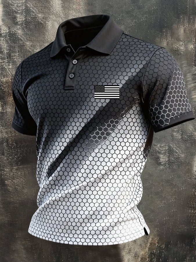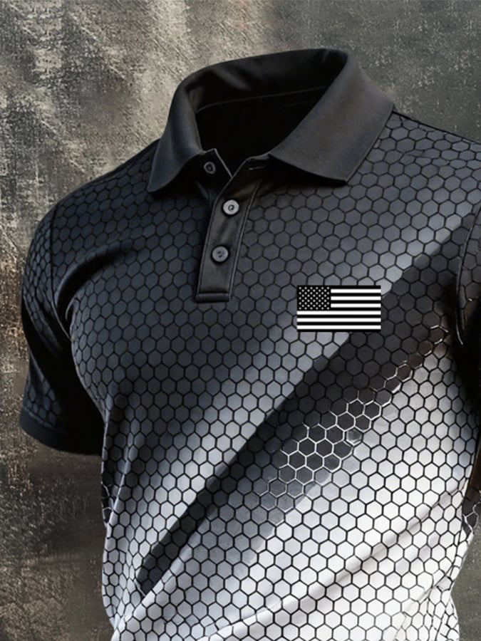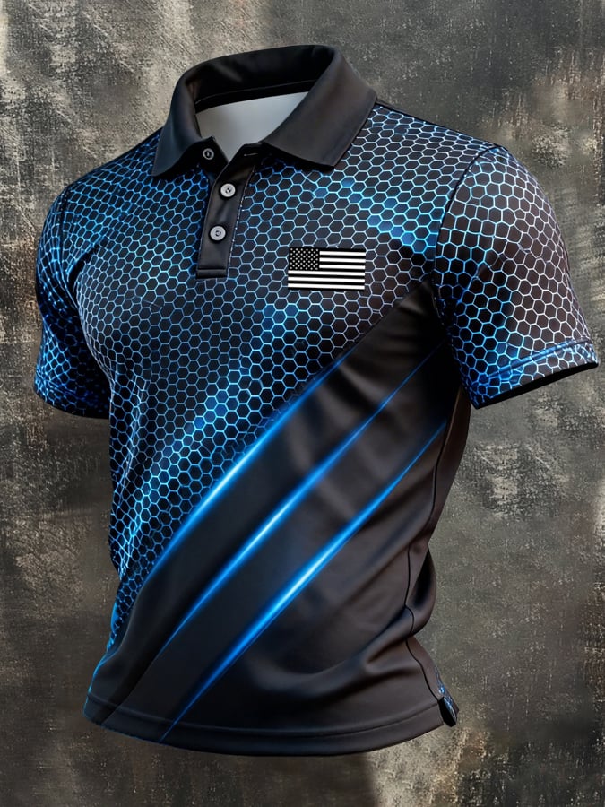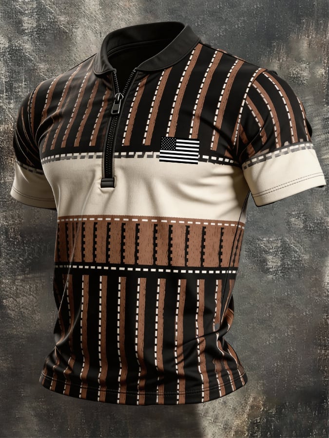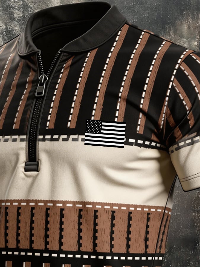 Men's Retro Patriotic Color-Block Short-Sleeve Polo Shirt$26.99 USD$64.27 USD