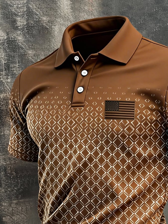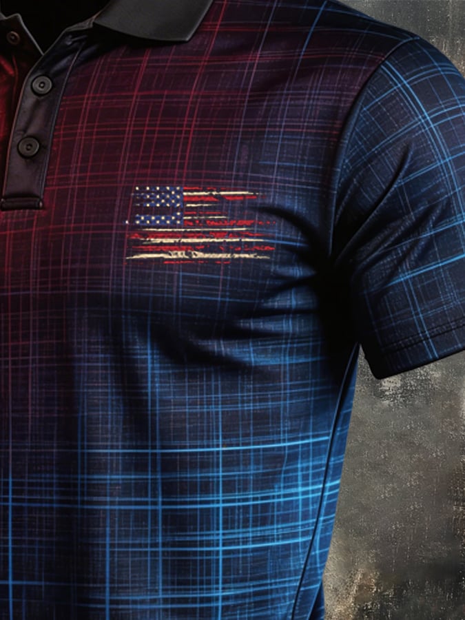 Men's Retro Patriotic Color-Block Short-Sleeve Polo Shirt$26.99 USD$52.31 USD