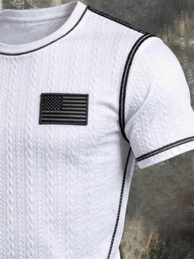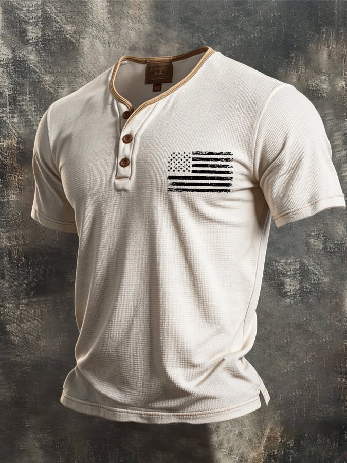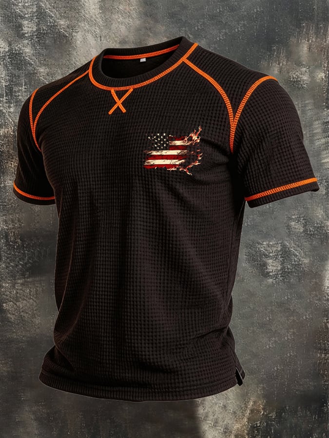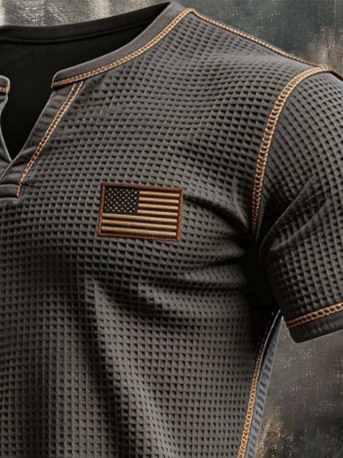 Men's Retro Patriot Patchwork Waffle T-shirt$30.99 USD$58.54 USD