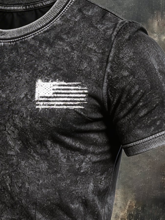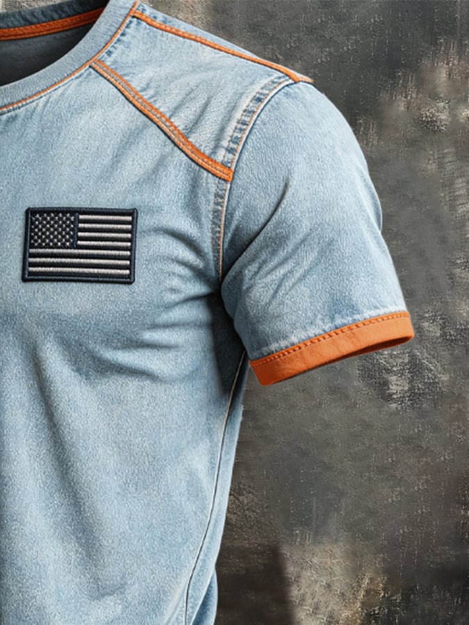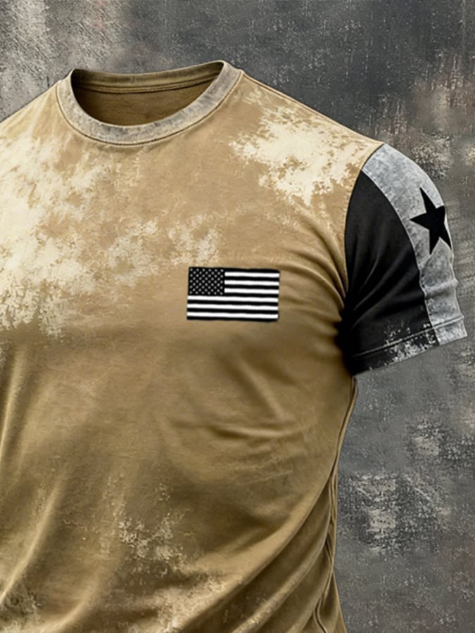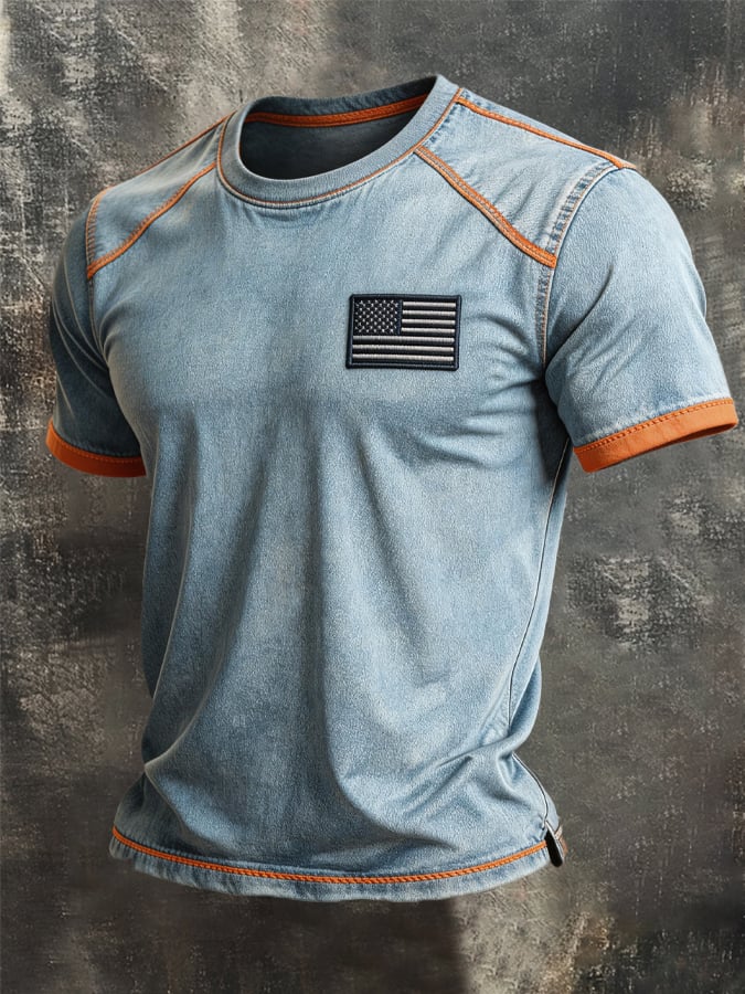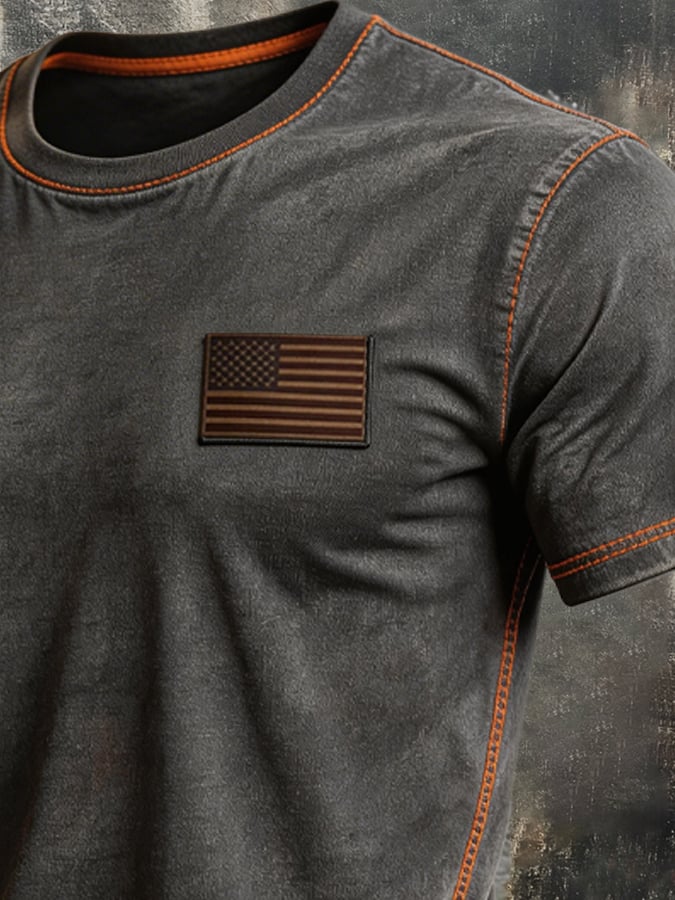 Men's Retro Color Stitching Pure Cotton Washed Faded Patriot T-Shirt$42.99 USD$106.13 USD