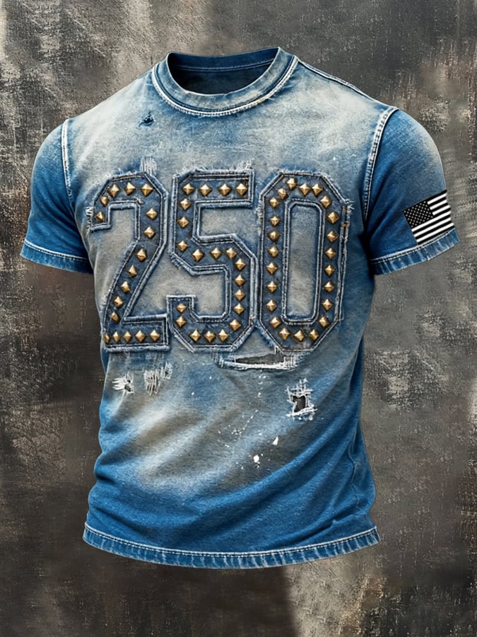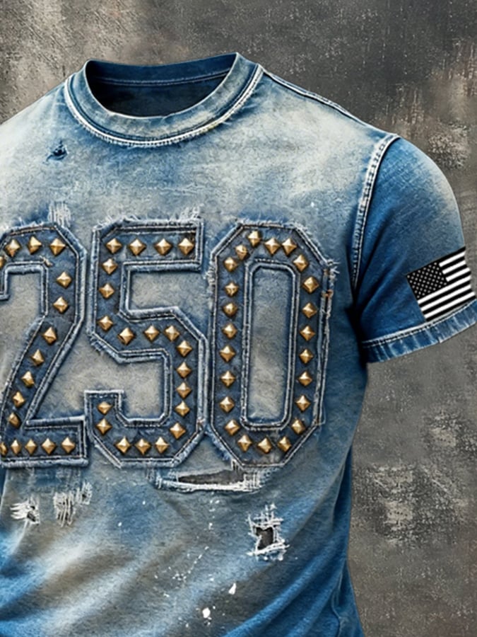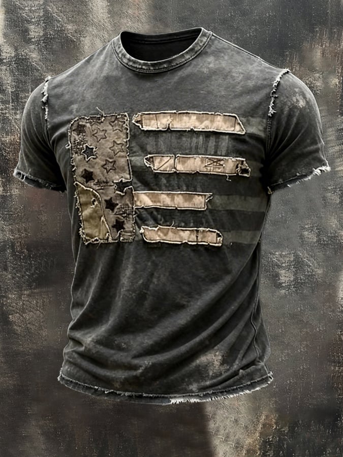 Men's Retro Patriot Patchwork T-shirt$29.69 USD$56.80 USD