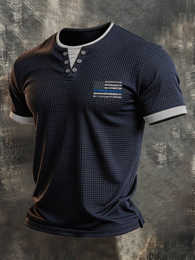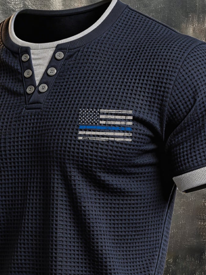 Men's Retro Color Block Waffle Patriot Henry T-Shirt$32.99 USD$73.24 USD