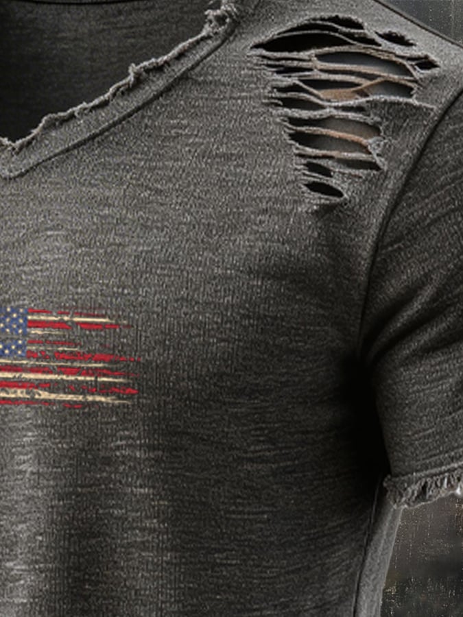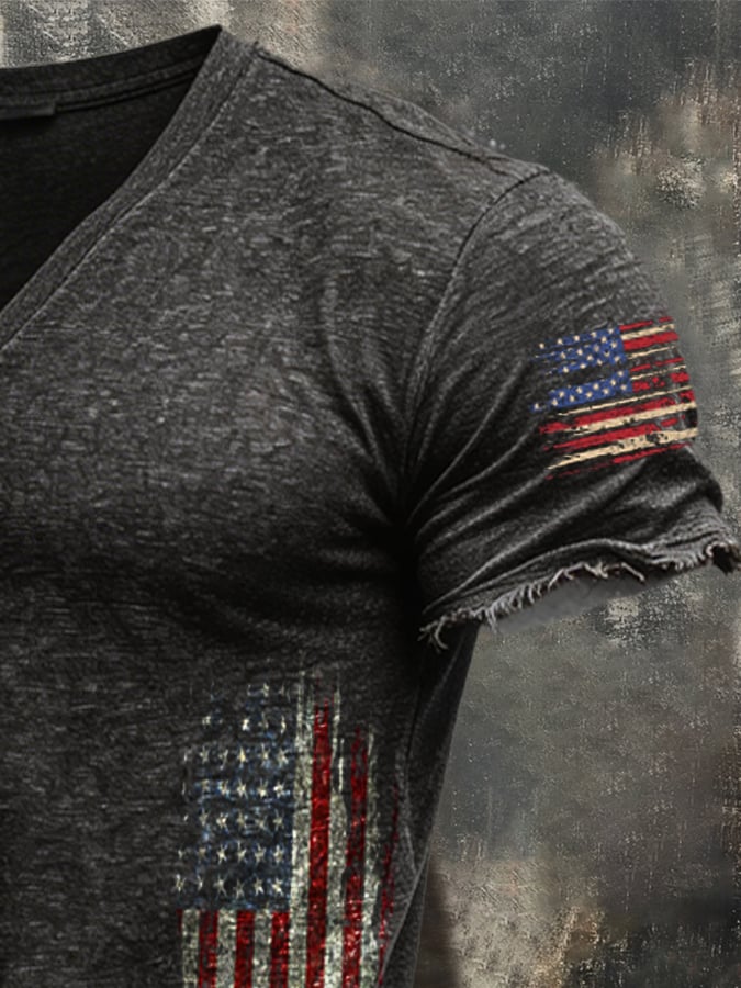 Men's Vintage Distressed Washed Patriotic V-Neck Short-Sleeve T-Shirt$43.99 USD$98.66 USD