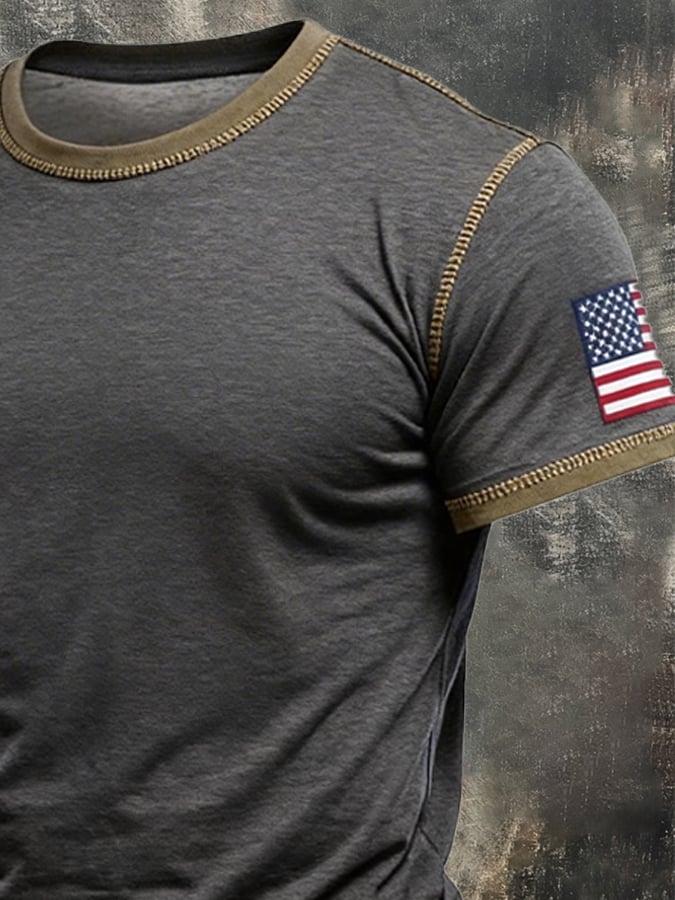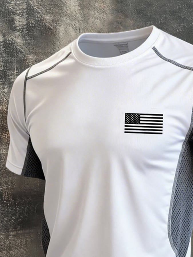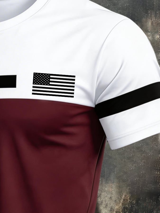 Men's Retro Color-Block "Patriot" Casual Quick-Drying Sports T-Shirt$25.99 USD$61.28 USD