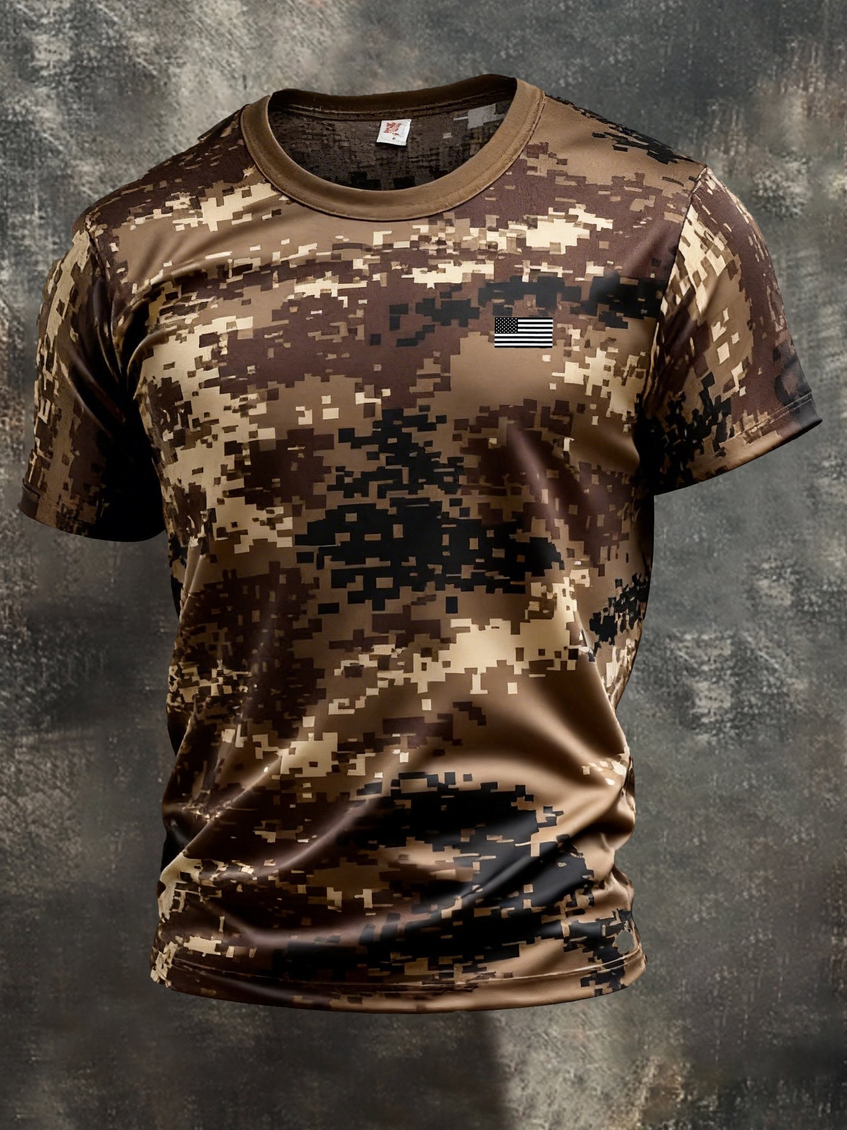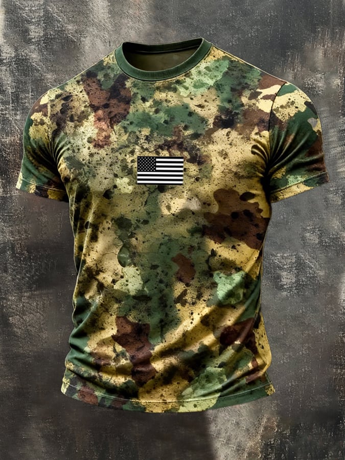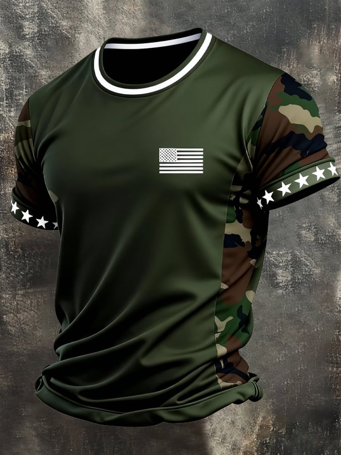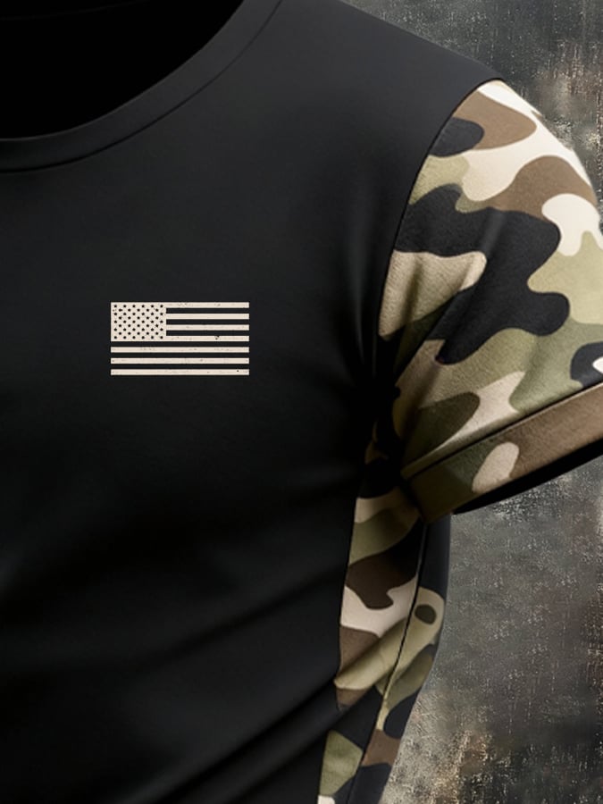 Men's Retro Patriot Camouflage Patchwork T-shirt$22.99 USD$42.67 USD
