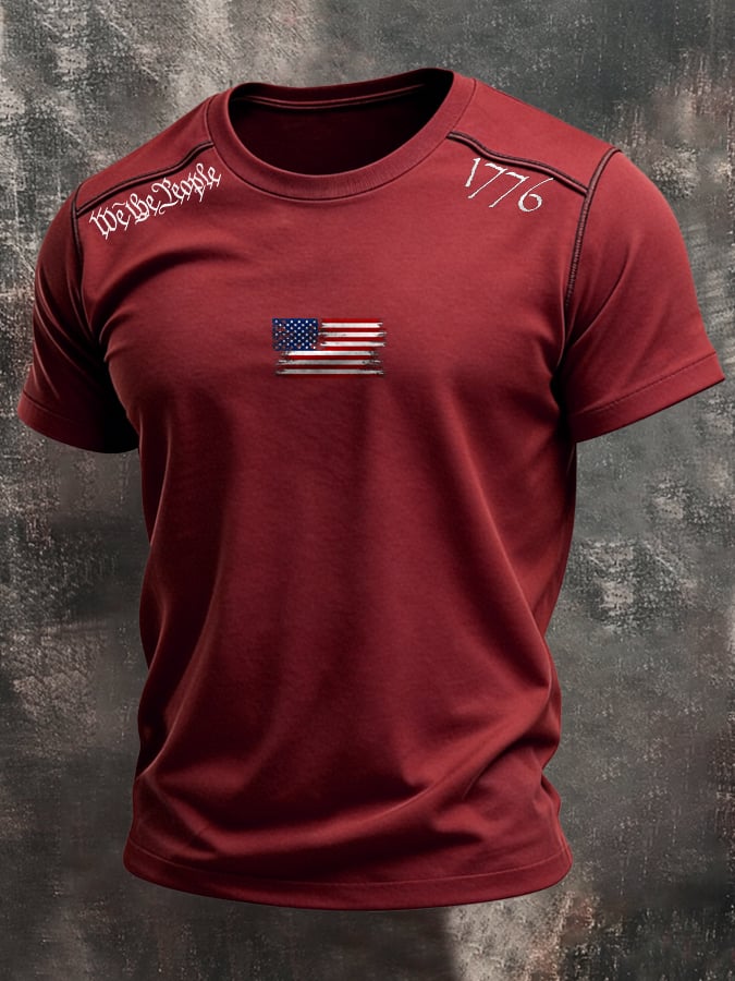 Men's Retro Comfortable Breathable Bamboo Cotton Patriot T-shirt$24.99 USD$61.28 USD