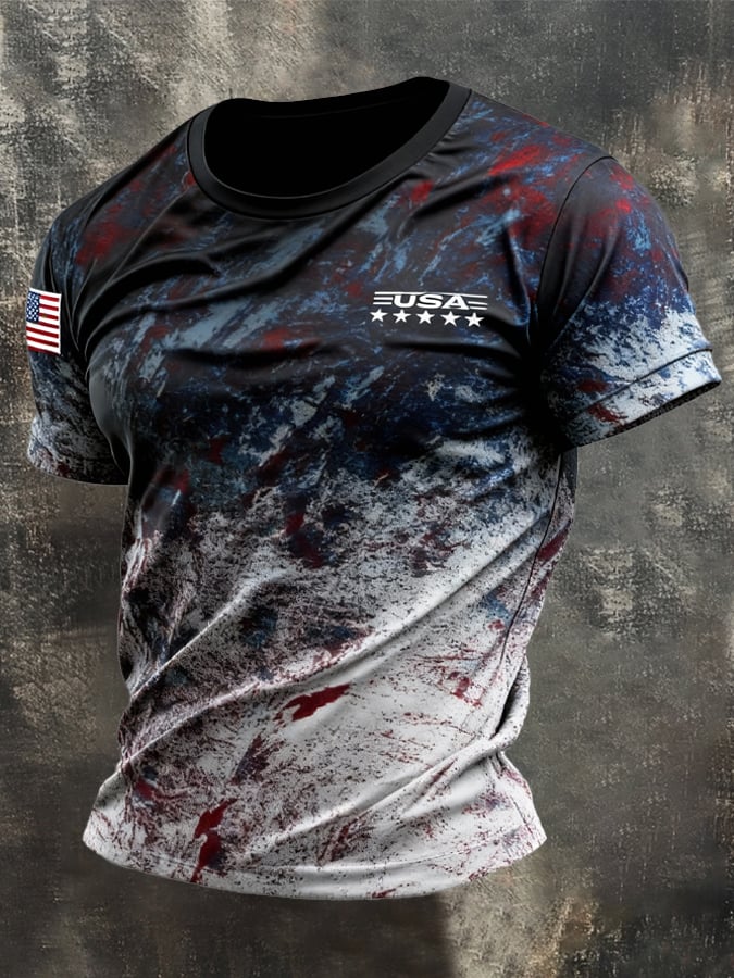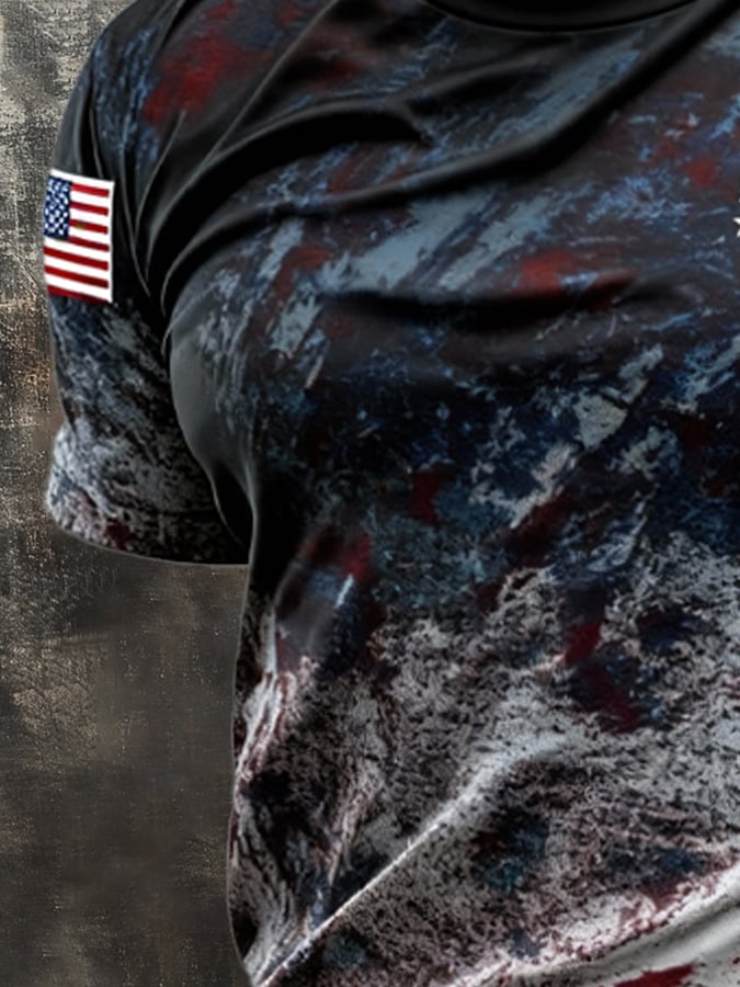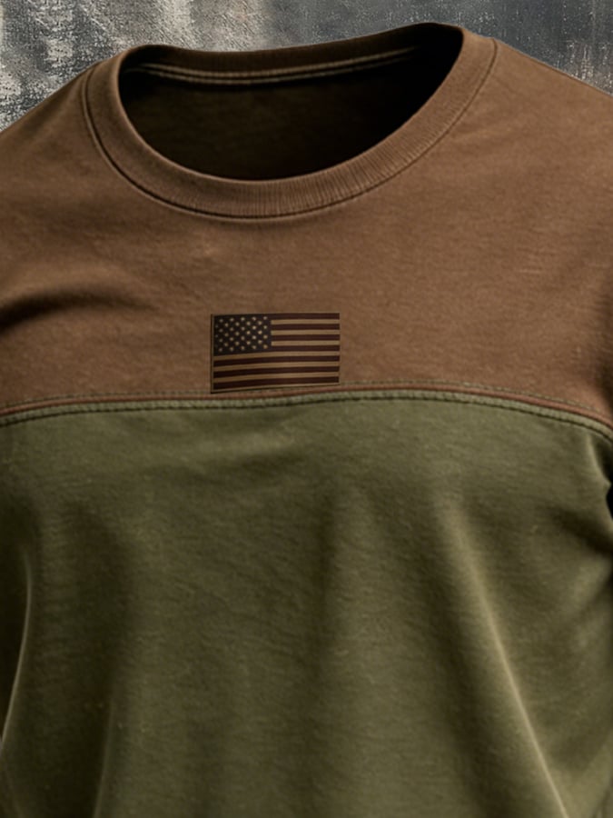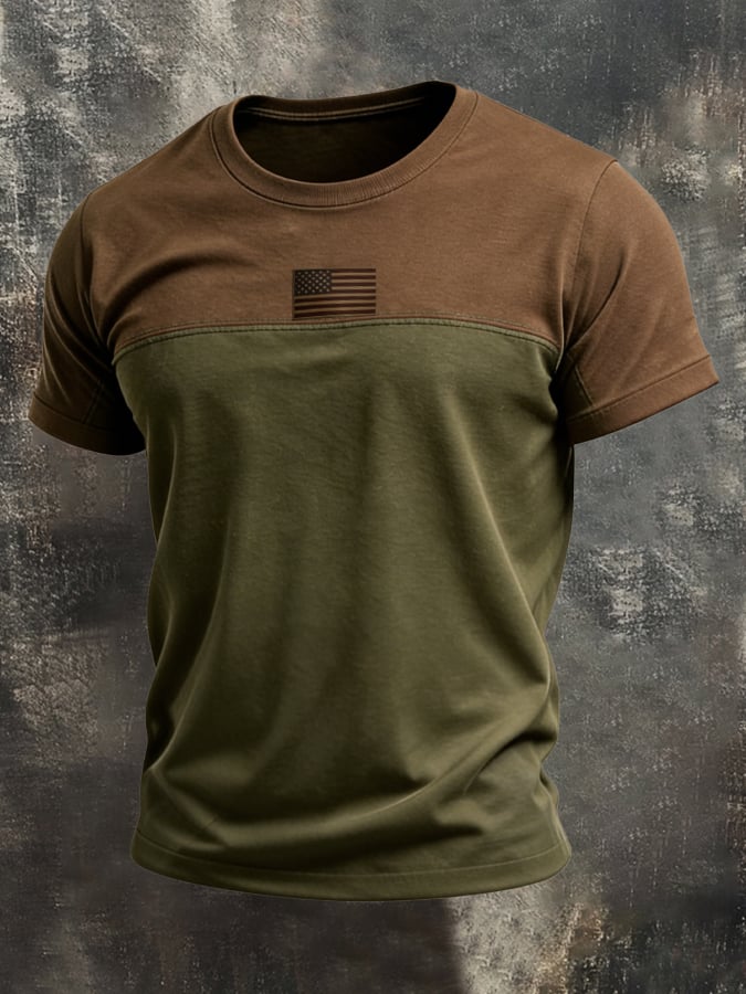 Men's Vintage Patriot Color Block Print Short Sleeve T-Shirt$22.99 USD$47.83 USD