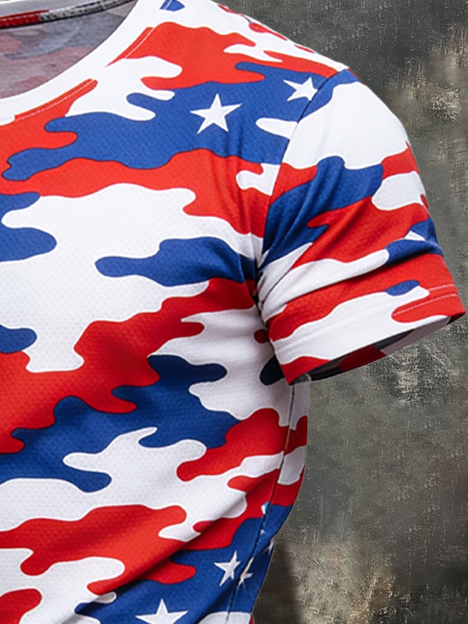 Men's Retro Camouflage Color-Block "Patriot" Short-Sleeve T-Shirt$24.99 USD$46.94 USD