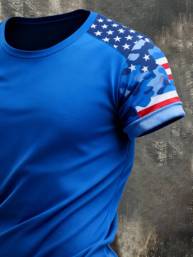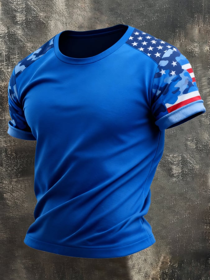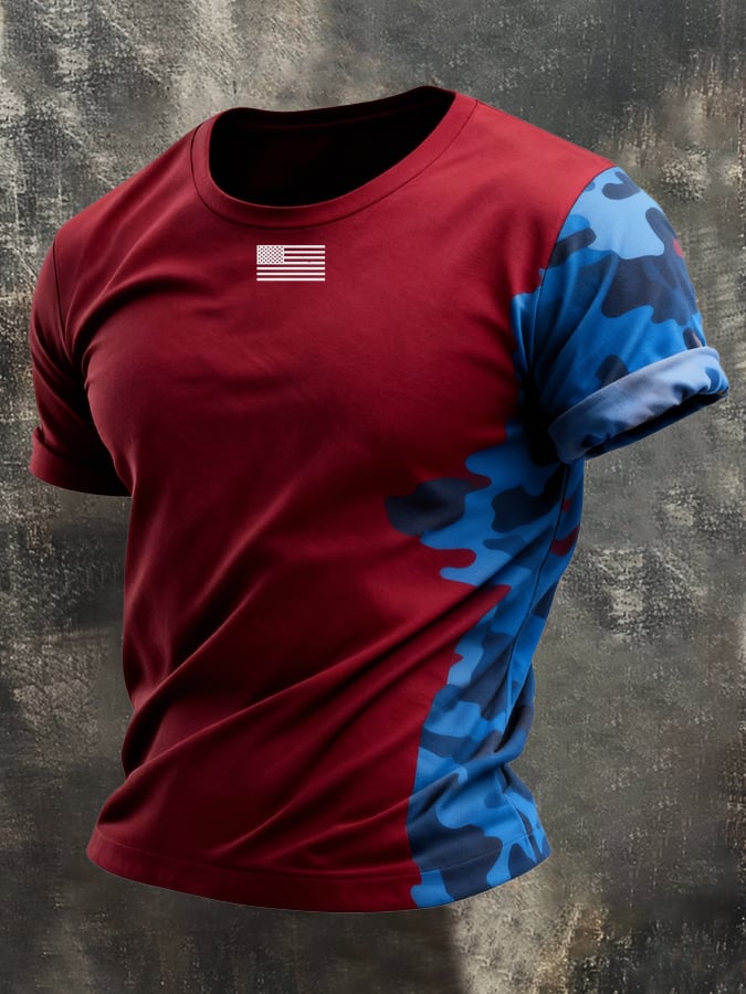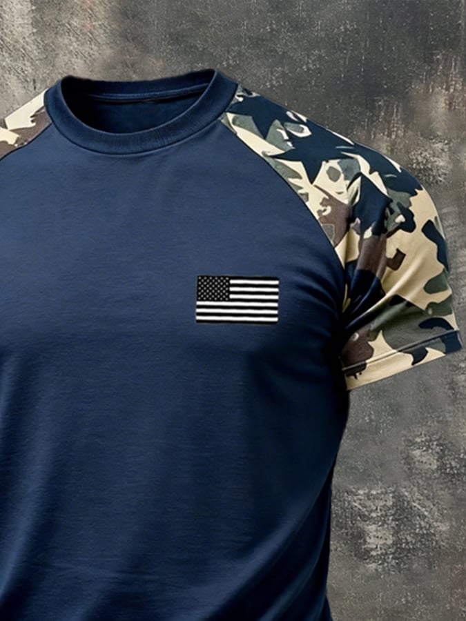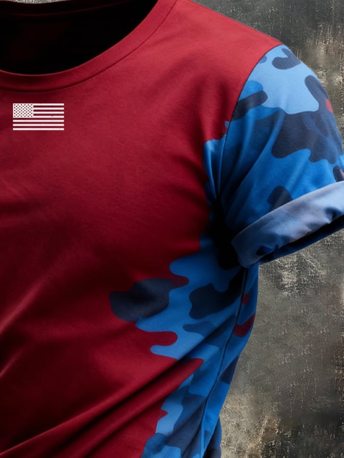 Men's Retro Patriot Camouflage Patchwork T-shirt$22.69 USD$41.85 USD