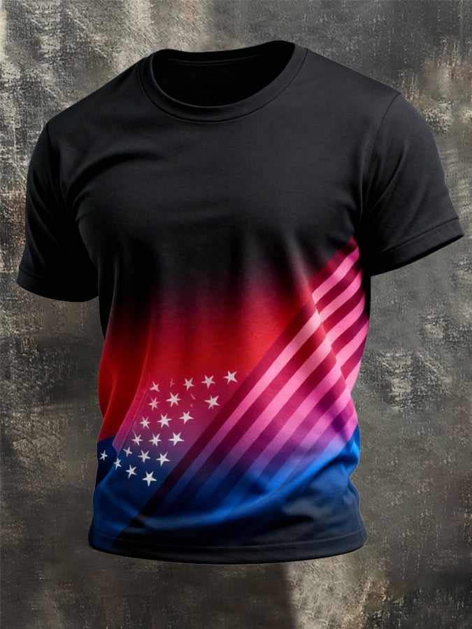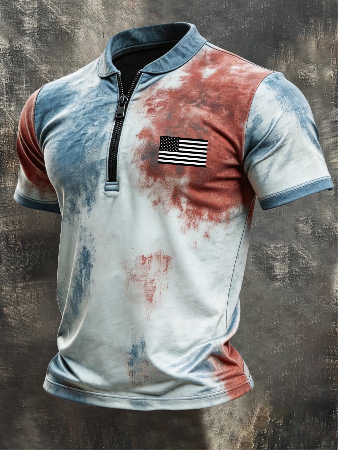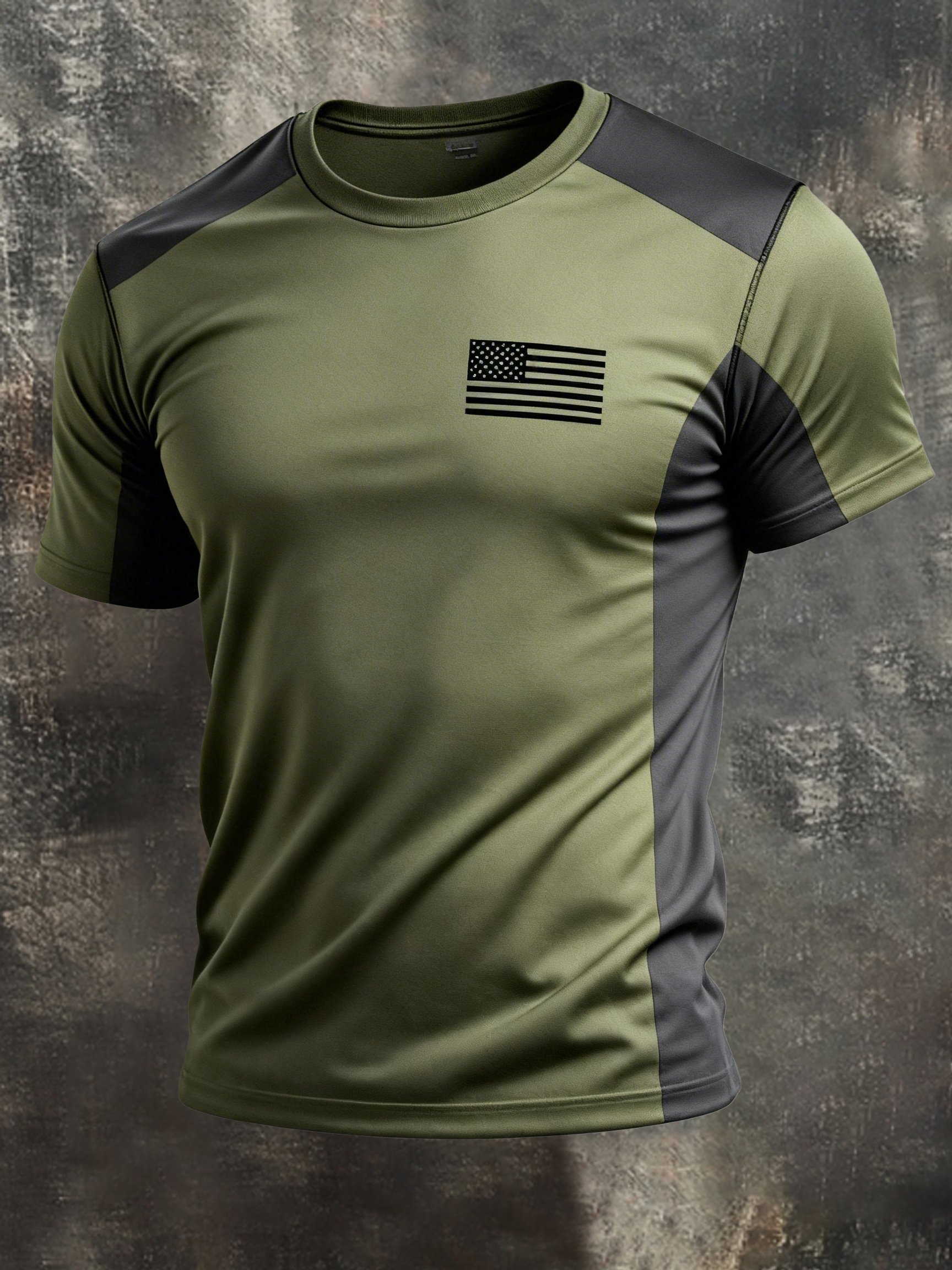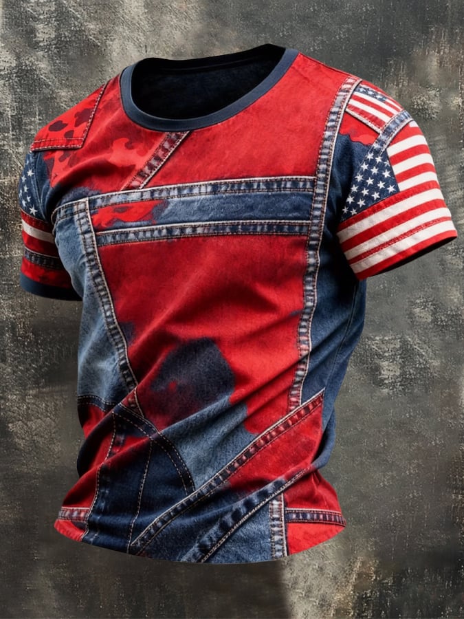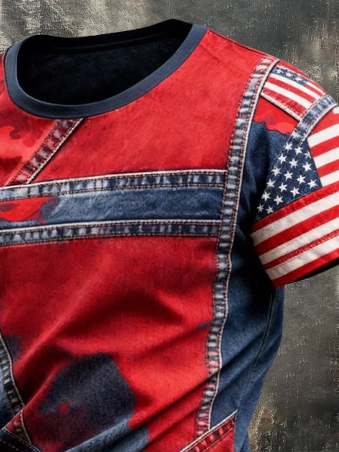 Men's Retro Patriot Patchwork T-shirt$25.99 USD$49.08 USD