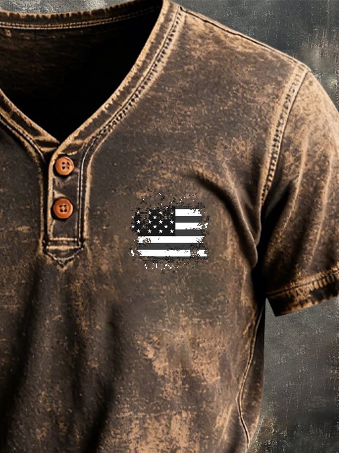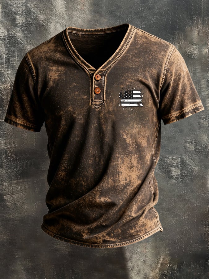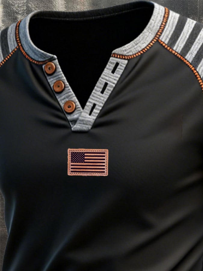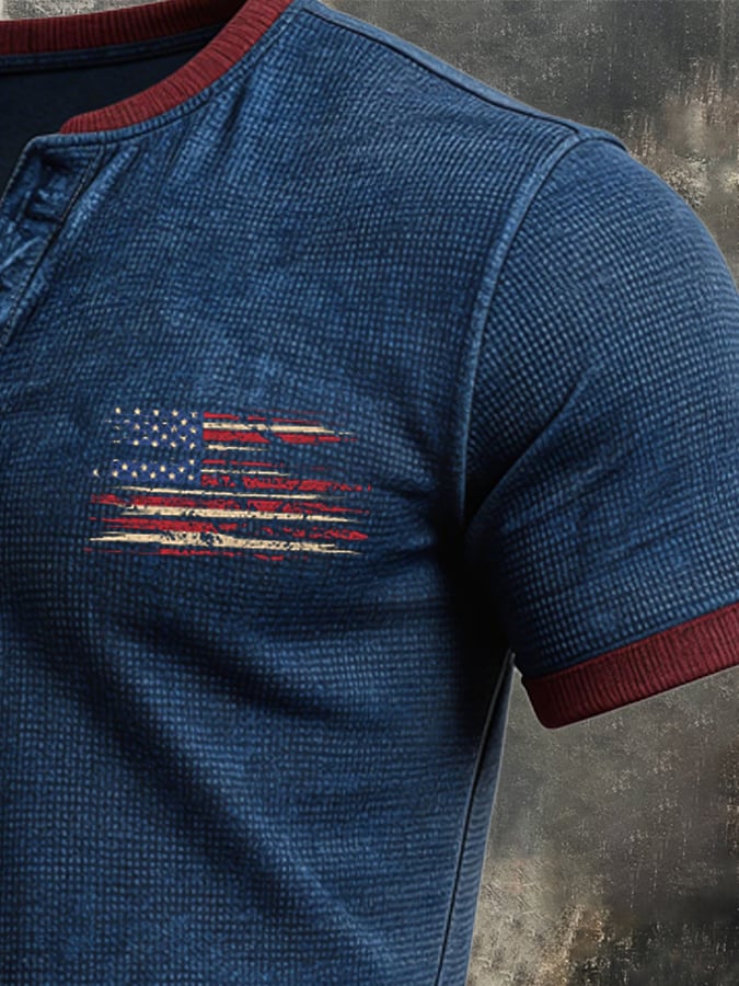 Men's Retro Patriot Patchwork Waffle T-shirt$25.99 USD$48.07 USD
