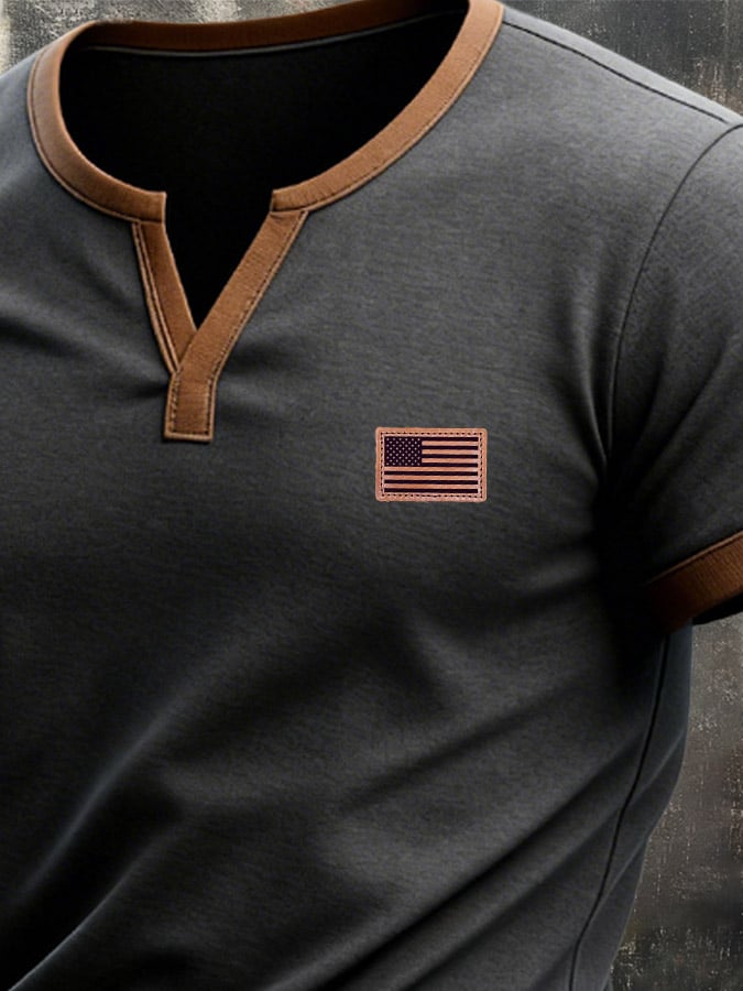 Men's Retro Patriot Patchwork T-shirt$25.99 USD$48.07 USD