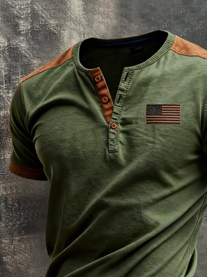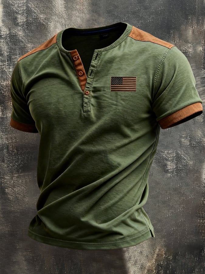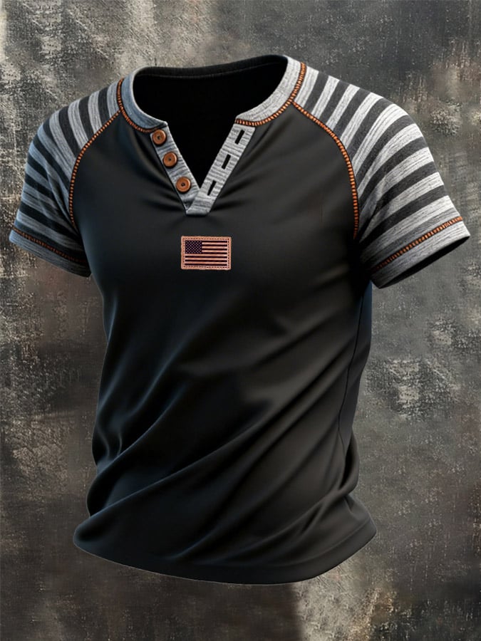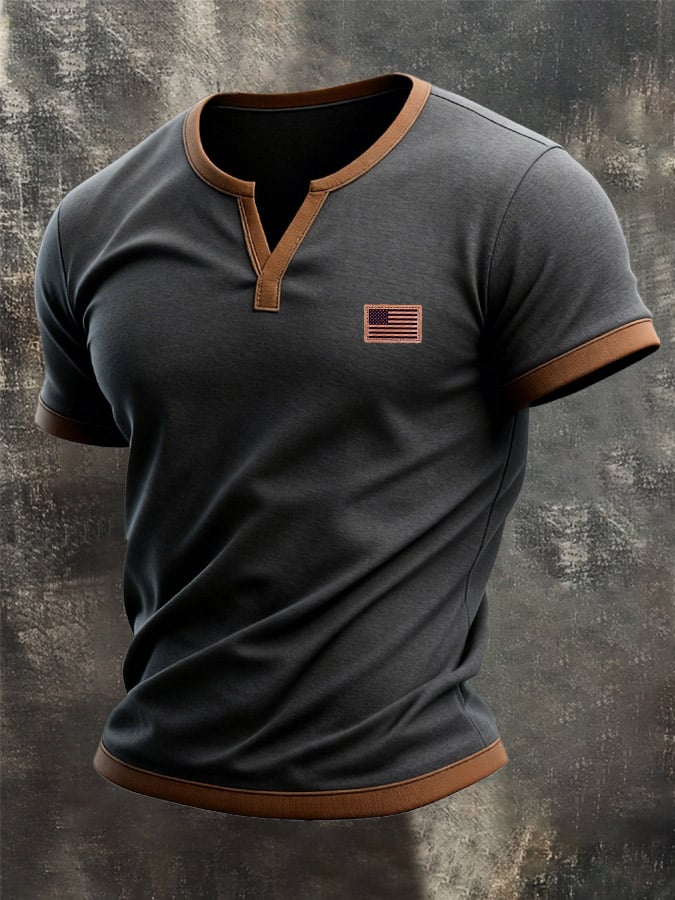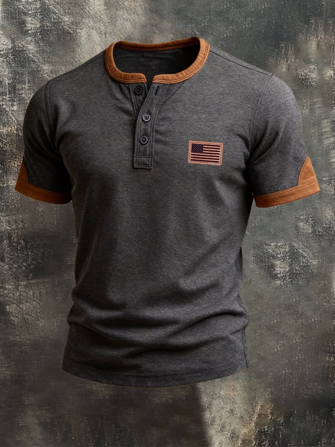 Men's Retro Color-Block Spliced Casual Short-Sleeve Henley T-Shirt$30.99 USD$65.77 USD