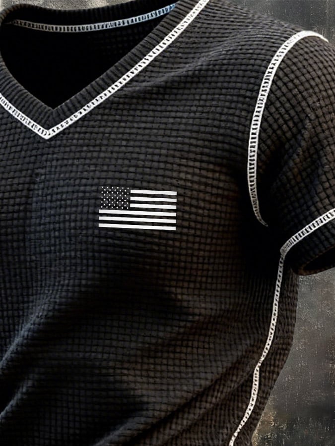 Men's Retro Patriot Patchwork Waffle T-shirt$30.99 USD$58.54 USD