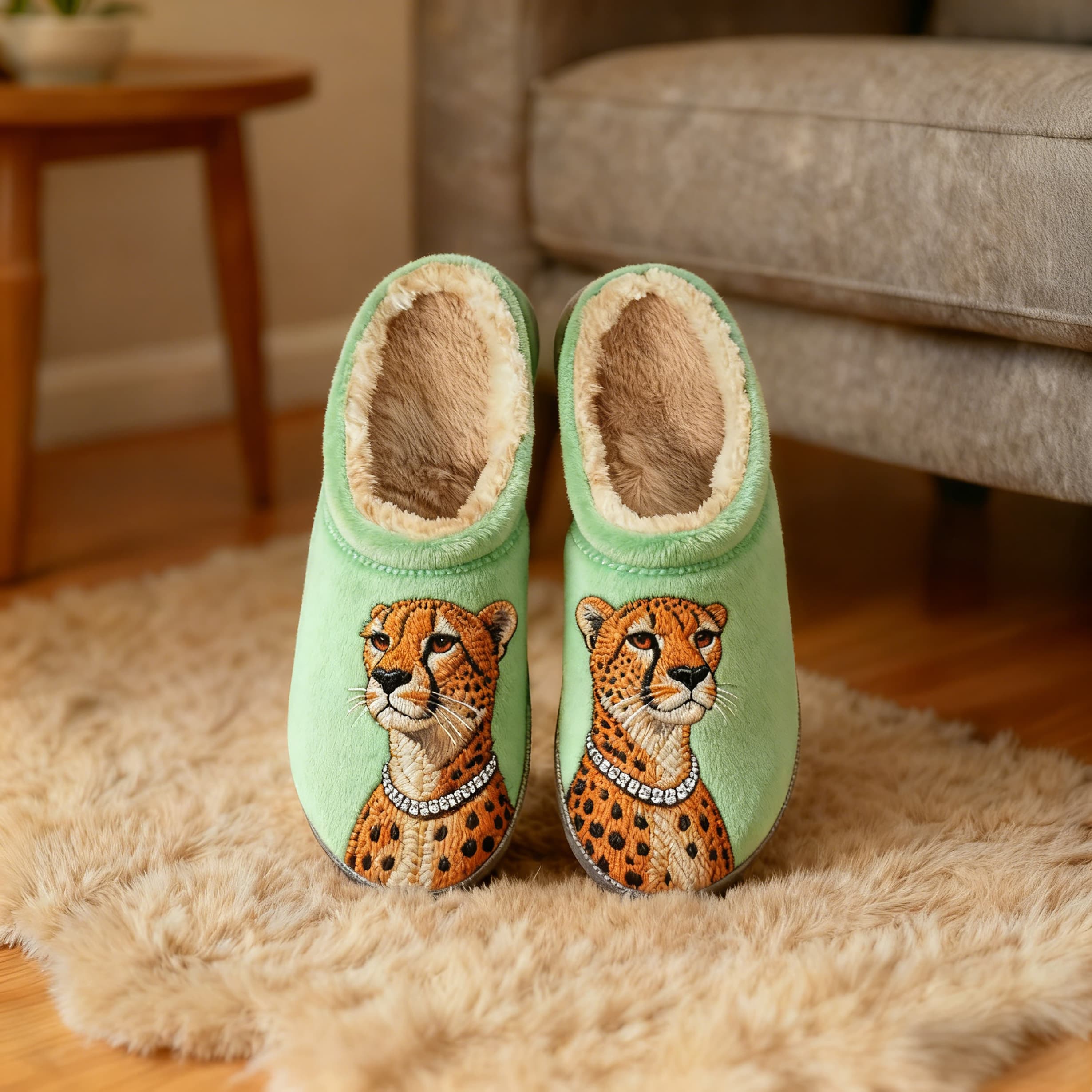 Elegant Cheetah Embroidery Plush Printed Slippers