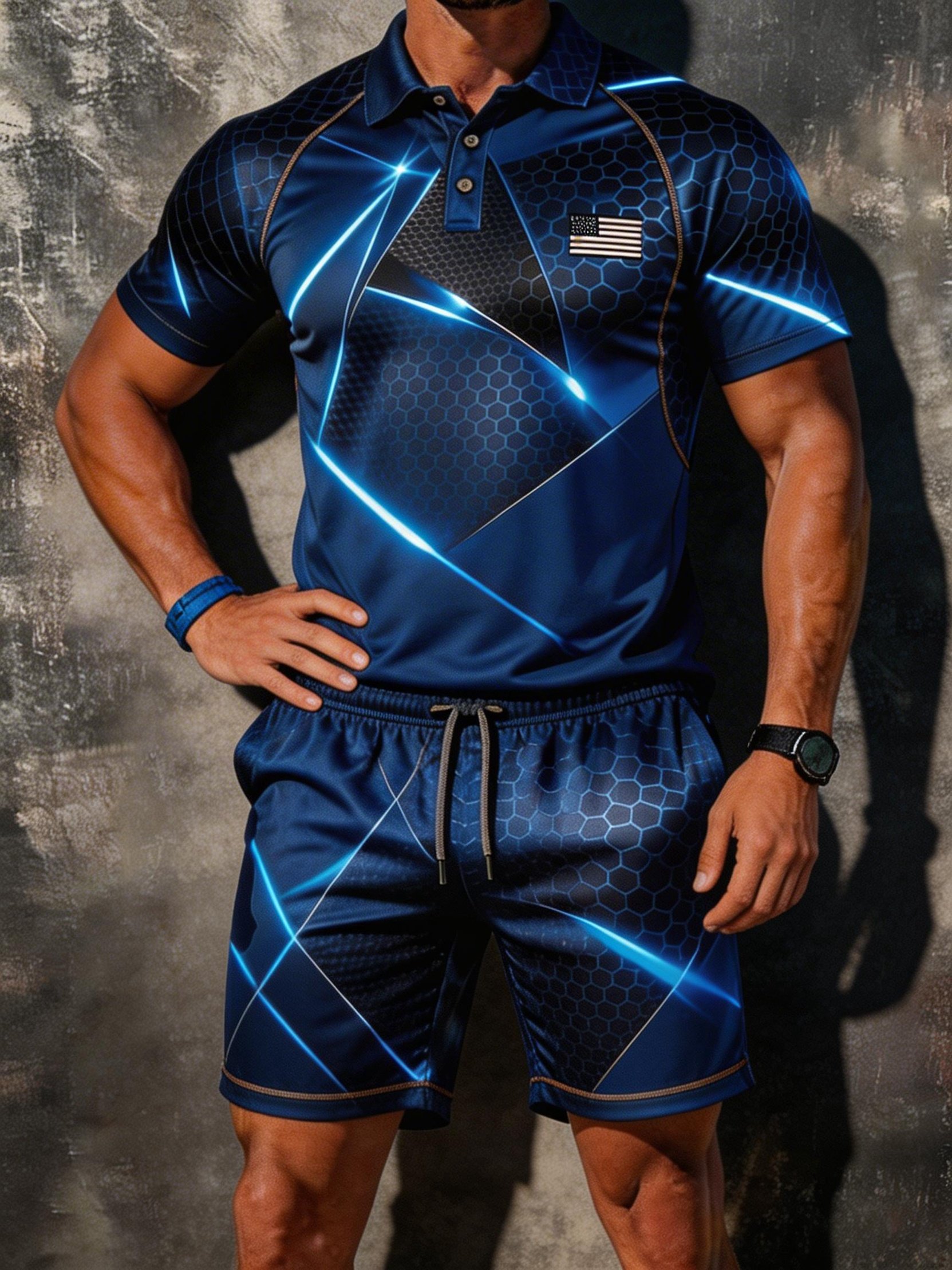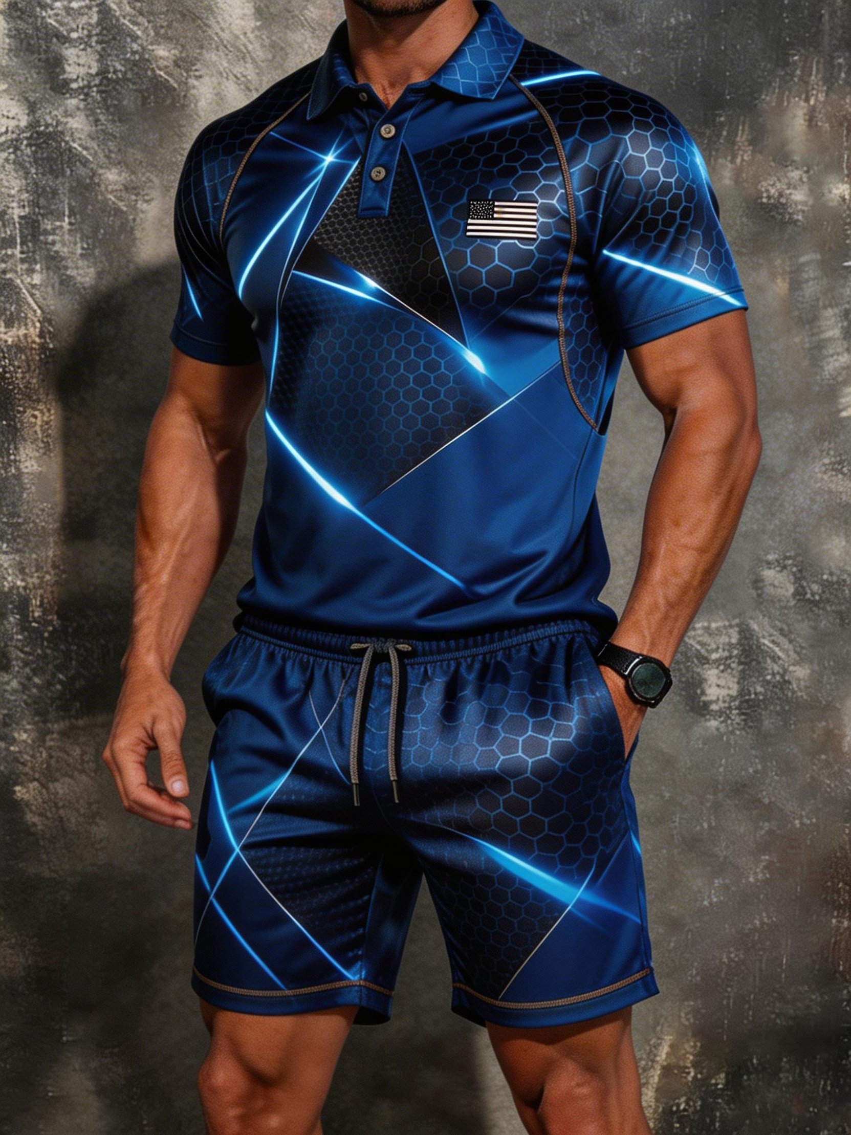 Men's Casual Athletic Basic Geometric Print "Patriot" Shorts & Short-Sleeve T-Shirt Set