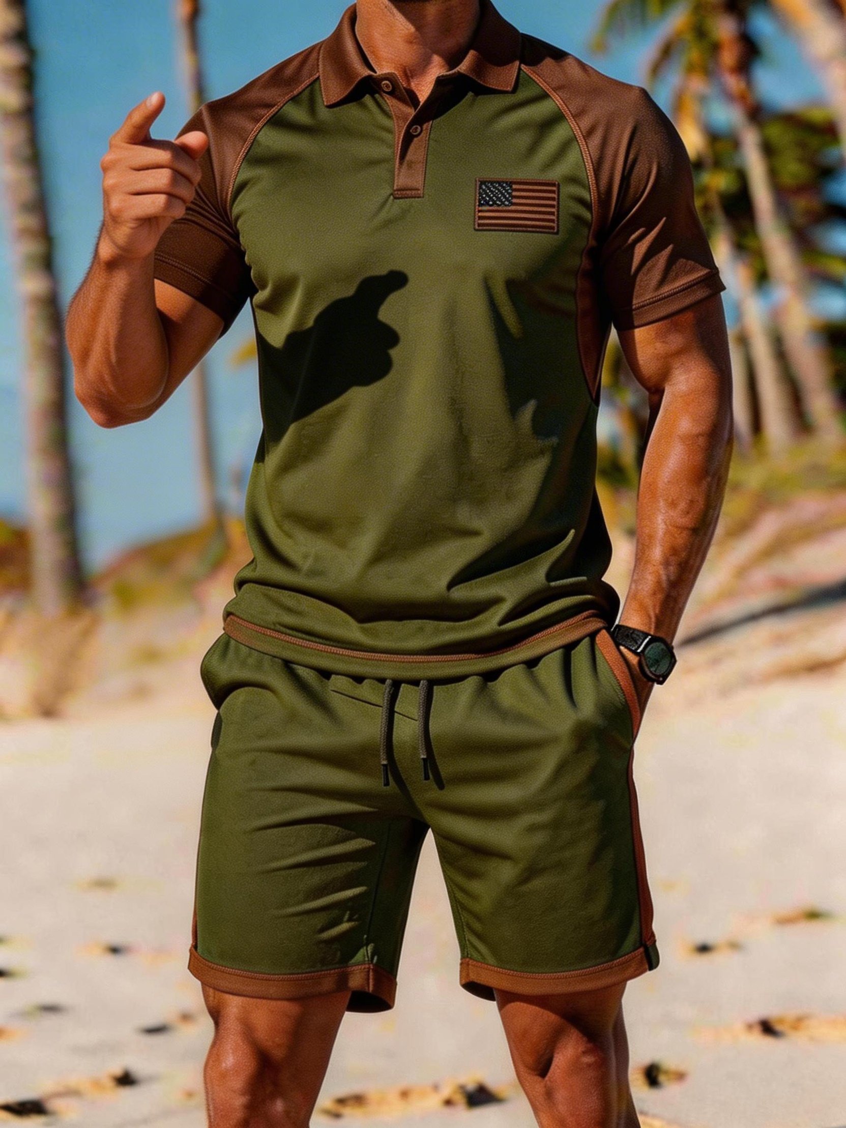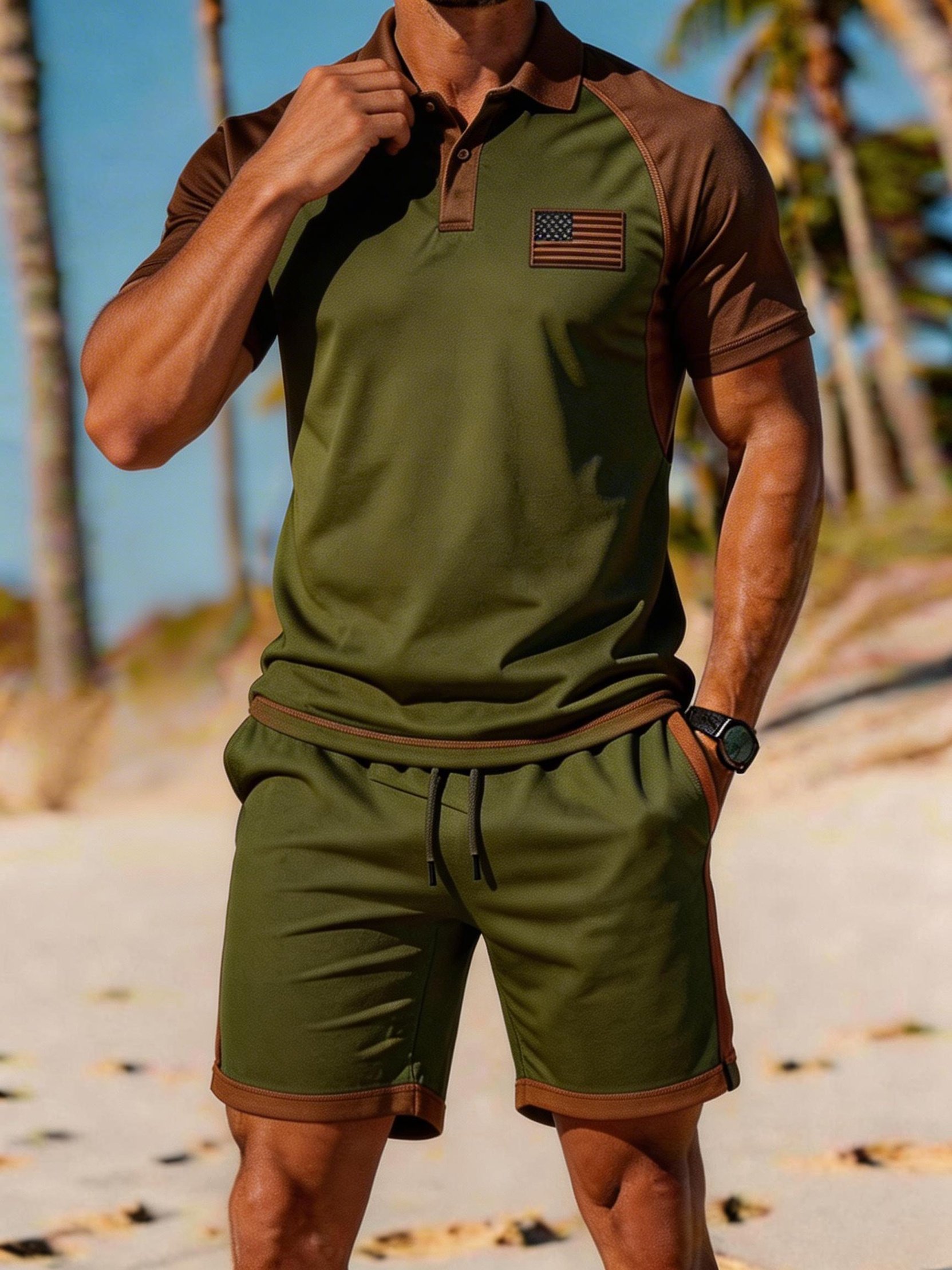 Men's Casual Athletic Color-Block Shorts & Short-Sleeve T-Shirt Set