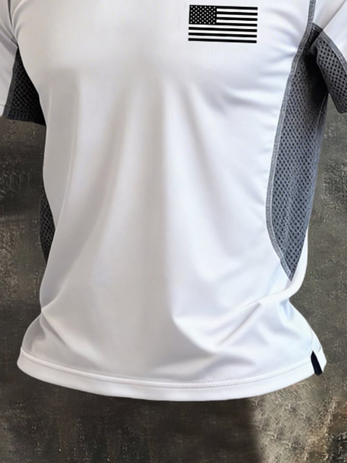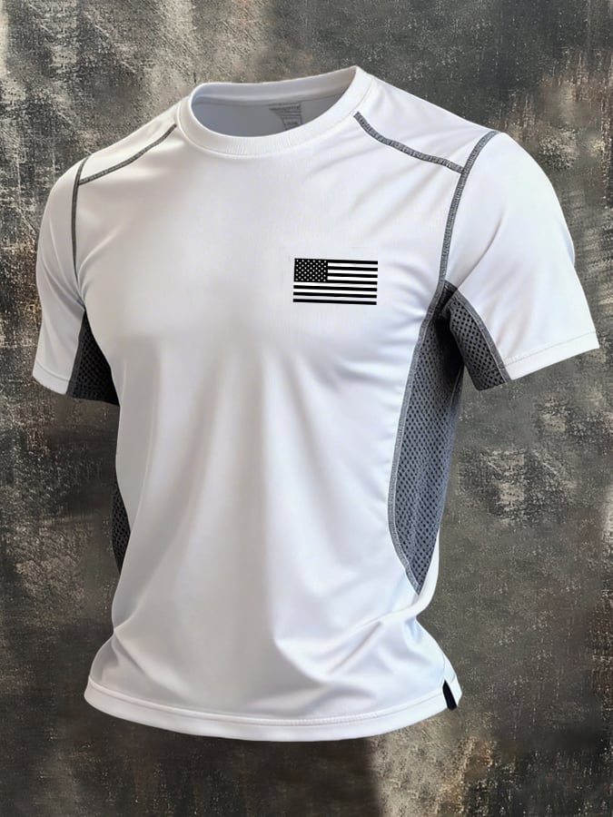 Men's Retro Color-Block "Patriot" Casual Quick-Drying Sports T-Shirt