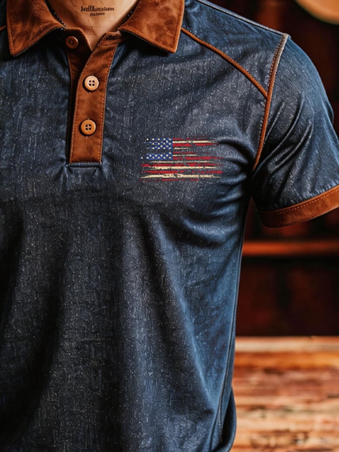 Men's Retro Color-Block "Patriot" Polo Shirt