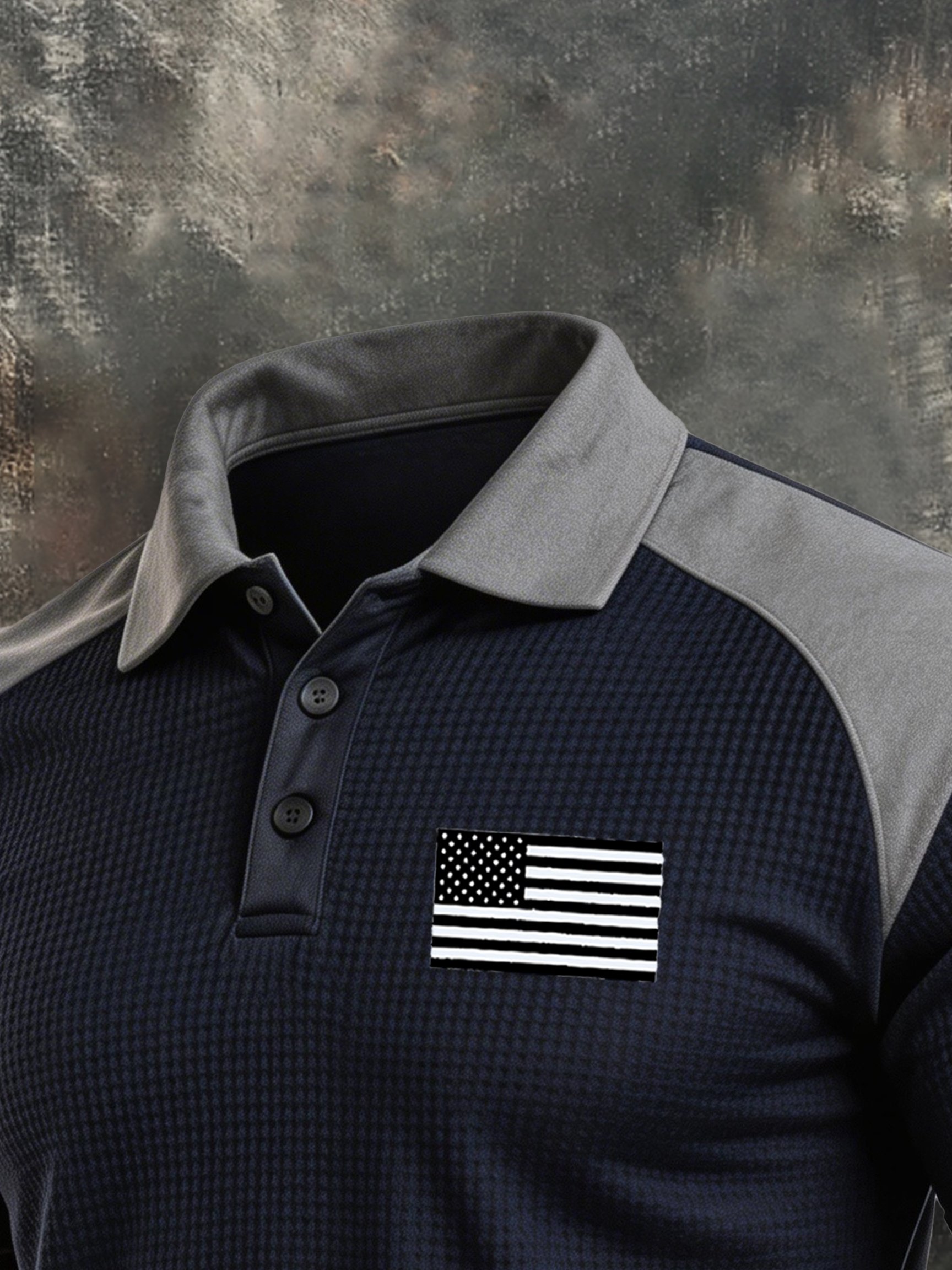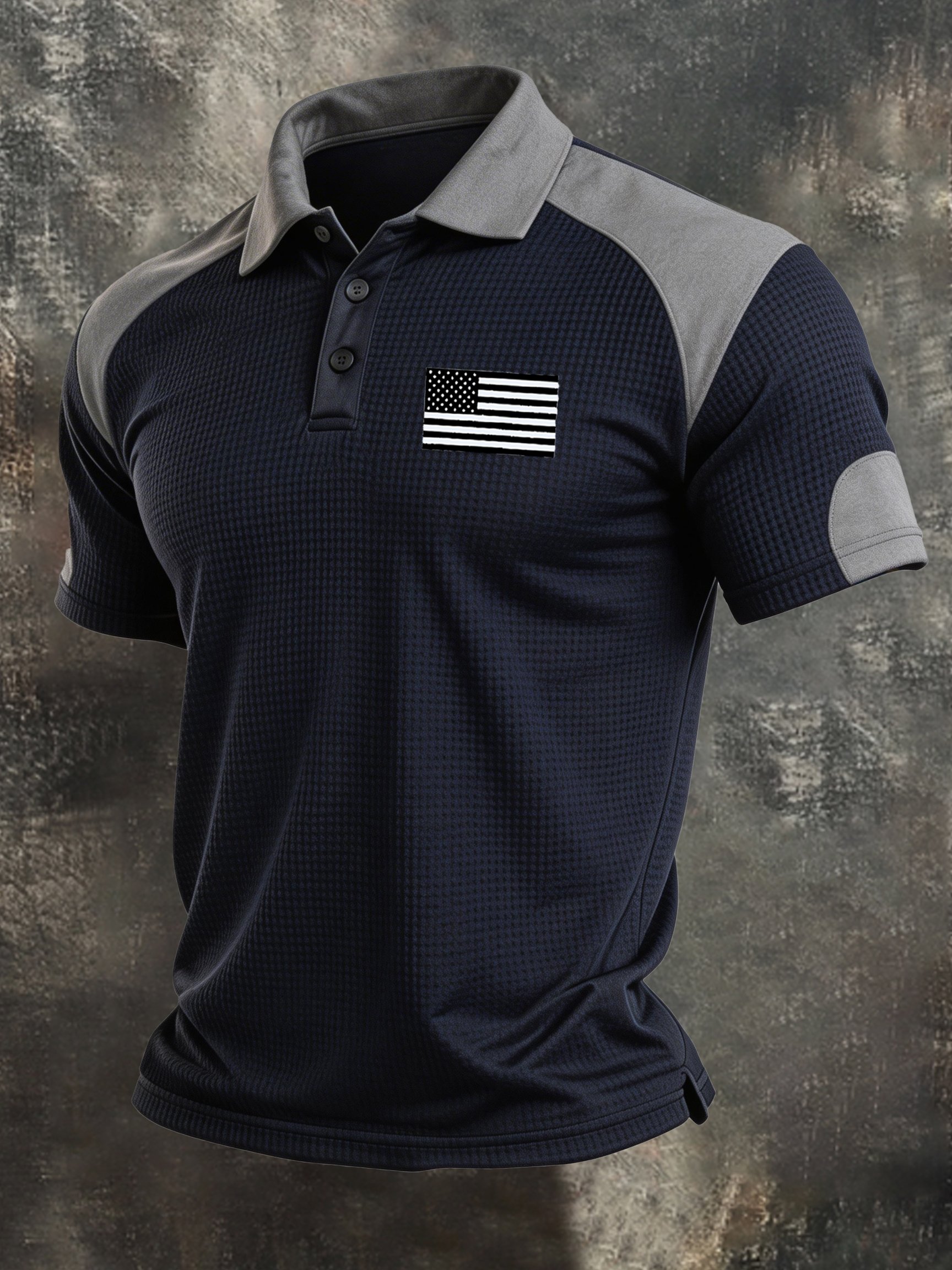 Men's Retro Color-Block "Patriot" Waffle-Knit Polo Shirt with Short Sleeves
