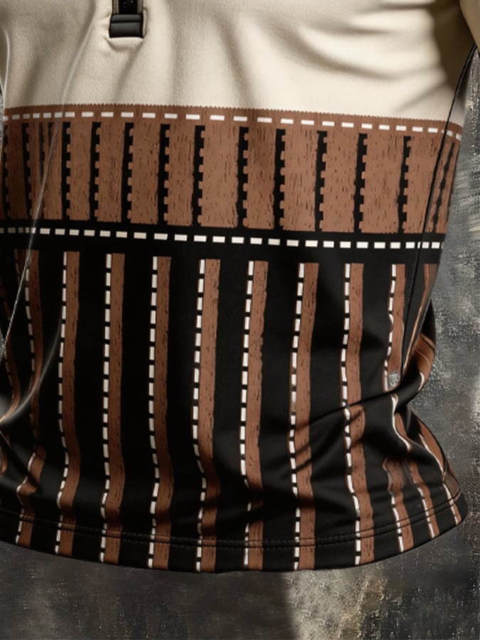 Men's Retro Color-Block Zip-Up T-Shirt