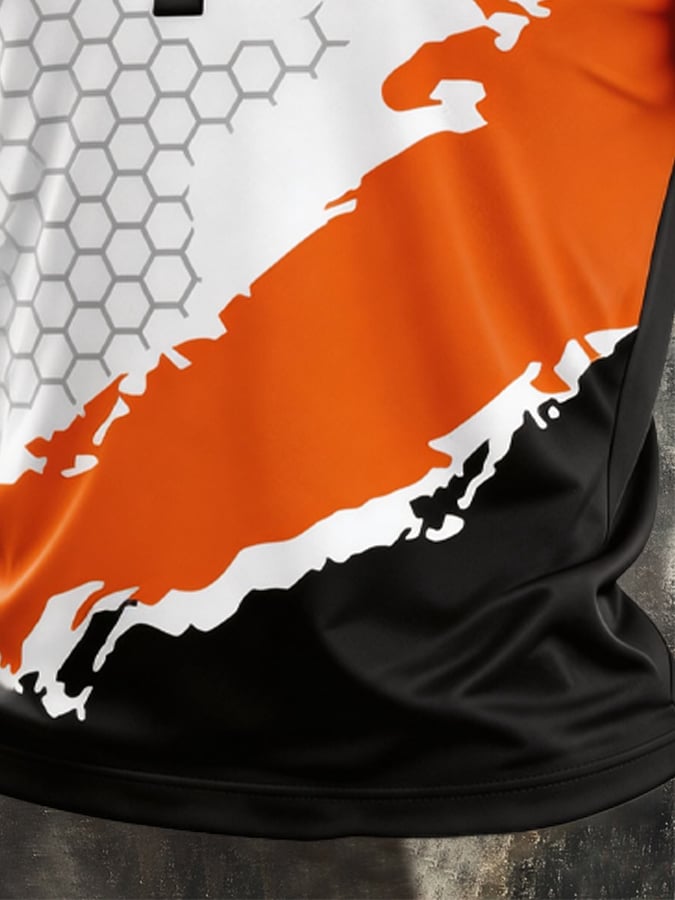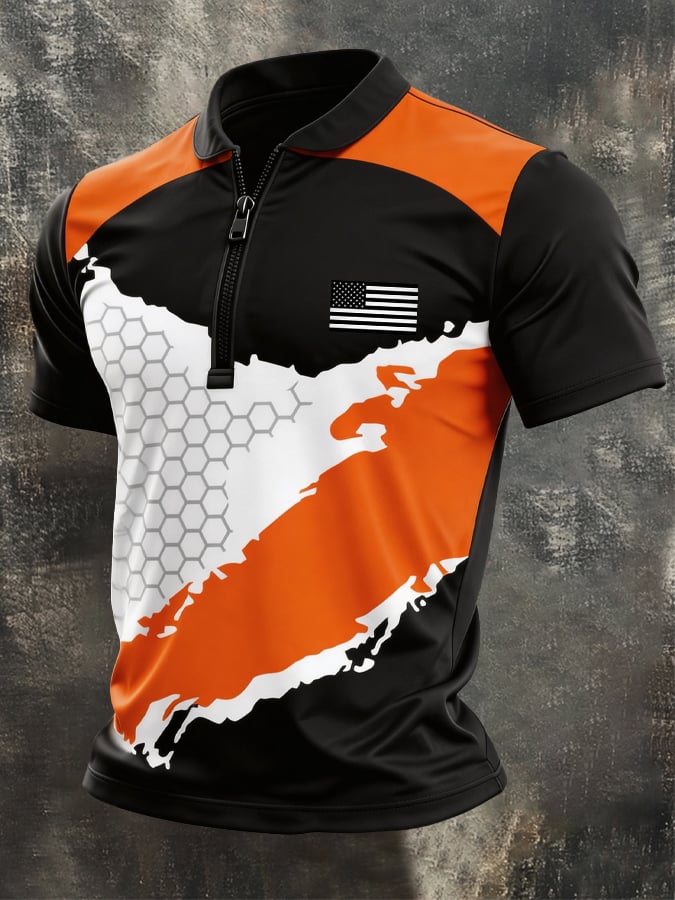 Men's Retro Color-Block Zip-Up T-Shirt