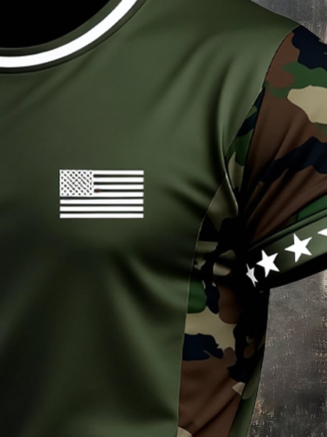 Men's Retro Patriot Camouflage Patchwork T-shirt