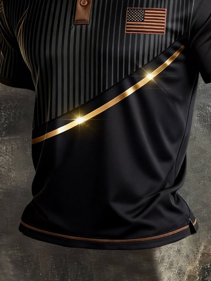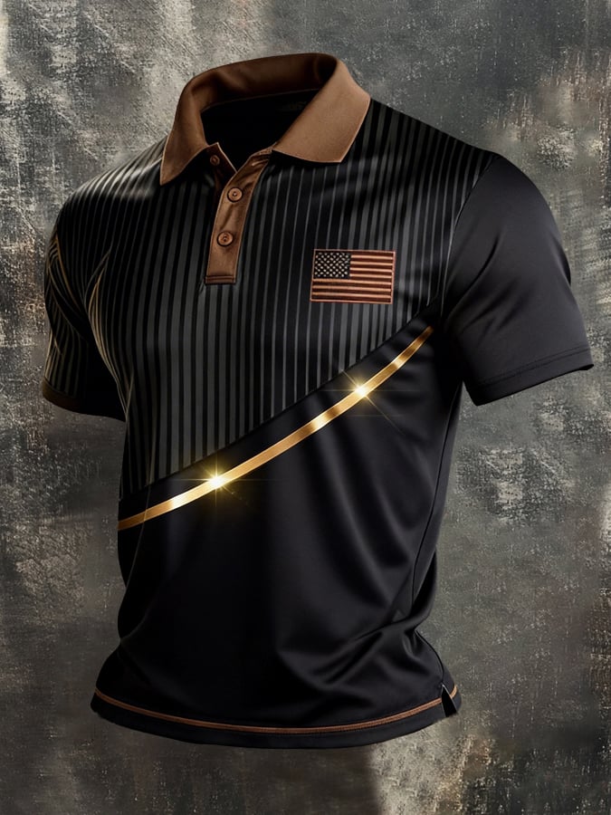 Men's Retro Patriot Color Block Polo Collar Short Sleeve