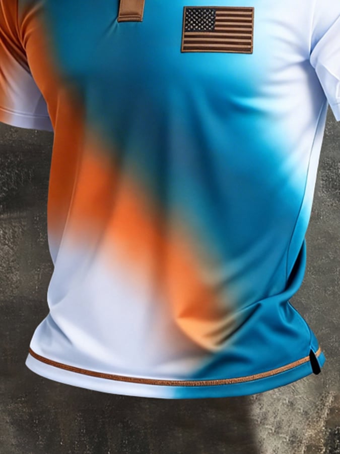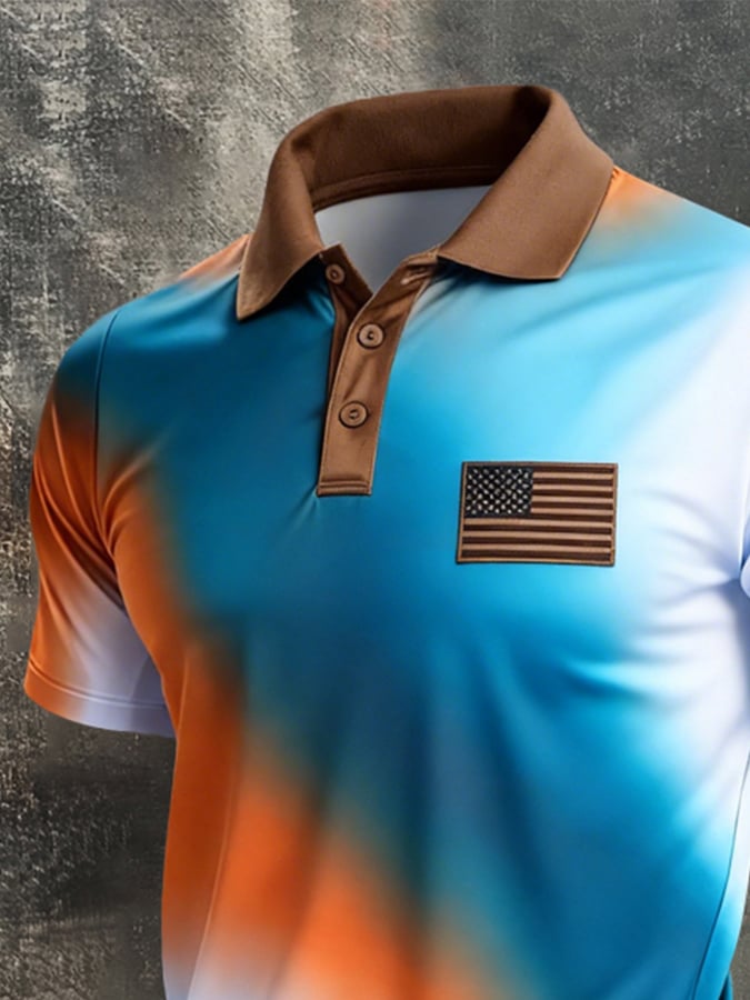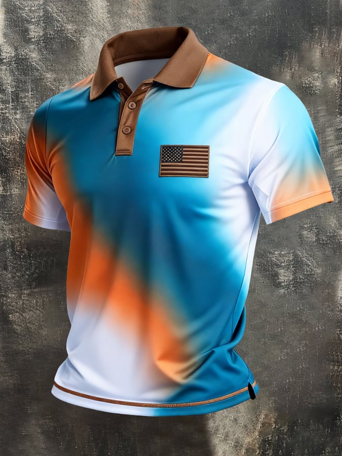 Men's Retro Patriot Color Block Polo Collar Short Sleeve